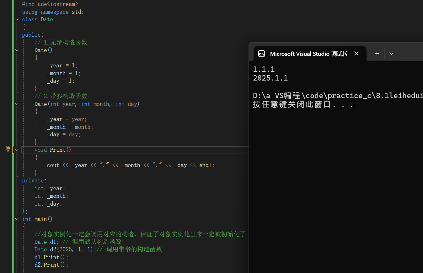 构造函数主要完成初始化工作。构造函数的本质是要替代以前Stack和Date类中写的Init函数的功能,构造函数自动调用的特点就完美的替代的了Init。
