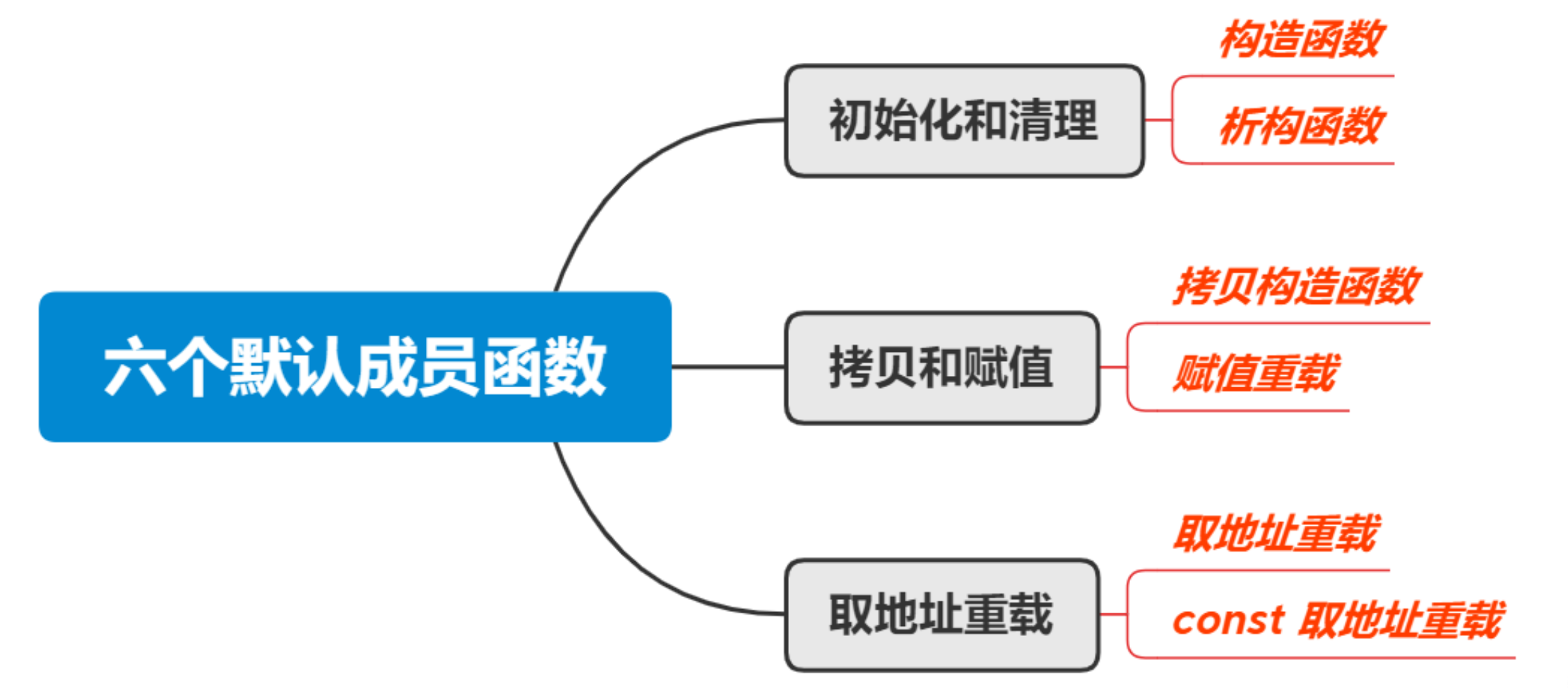 默认成员函数就是用户没有显式实现,编译器会自动生的成员函数称为默认成员函数。⼀个类,我 们不写的情况下编译器会默认生成以下6个默认成员函数,需要注意的是这6个中最重要的是前4个