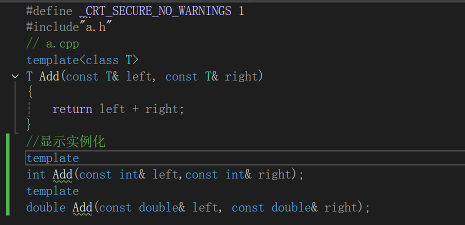 2. 模板定义的位置显式实例化。这种方法不实用,不推荐使用。