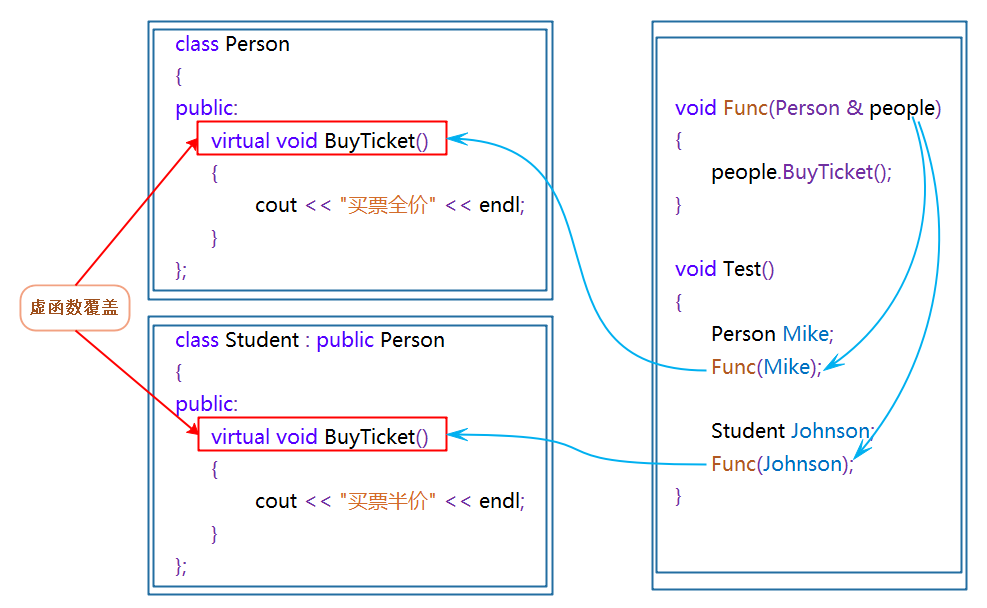 // 这⾥可以看到虽然都是Person指针Ptr在调⽤BuyTicket
