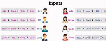首先我们在思考的时候从第一次双方的配对情况思考,由男方向女方求婚,有多少个男性就发出多少次邀请,在发起邀请时要考虑优先级,所以男性按照女性配偶在自己心中的优先级发出邀请,如果对方已有婚约则女方会对两位男性在自己心中的地位进行比较,再选择其中优先级高的男性,以此类推直至所有人都认为自己现在的婚约是最好的。