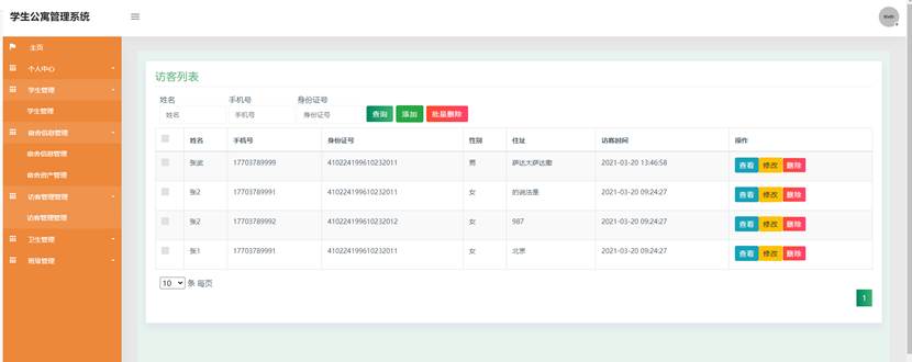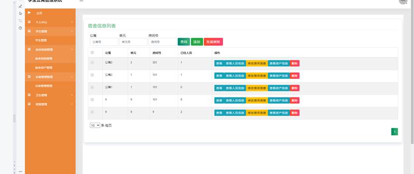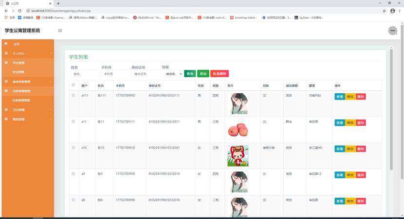 管理员模块是系统的核心,负责学生信息、宿舍分配、访客记录等所有基础数据的管理。以下是部分核心代码实现: