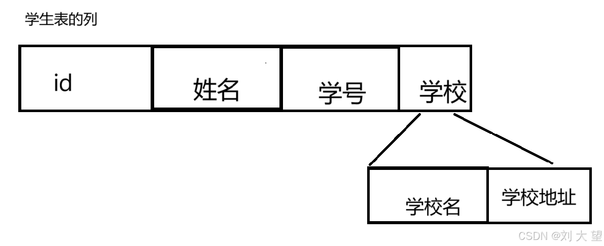 可以看到学校列还能再分不符合第一范式每一列不可分割的要求