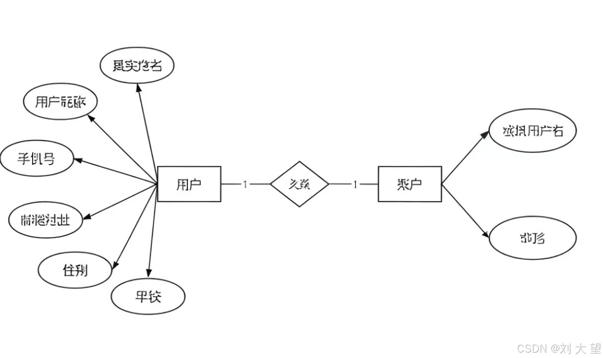 ⽤户实体与账户实体是⼀对⼀的关系↓
