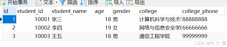 在这个表结构中,可以看出学生的学号、姓名、年龄、性别、学院与主键Id强相关;学院电话与学院强相关;在一个表中出现了两个强相关的关系,而且这两个强相关关系又存在传递现象,即通过学生Id可以找到学生记录,学生记录中包含学院名,每个学院又有自己的电话