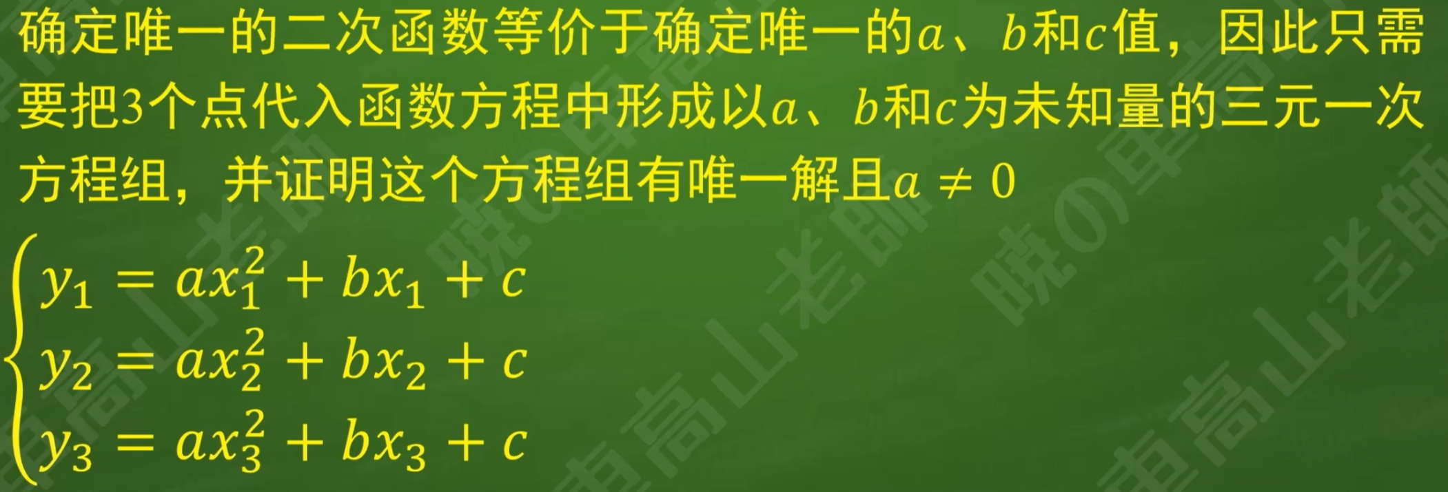 求证:3个不共线且横坐标两两不同的点(x1,y1),(x2,y2),(x3,y3)可以确定唯一的二次函数y=ax²+bx+c(a≠0)