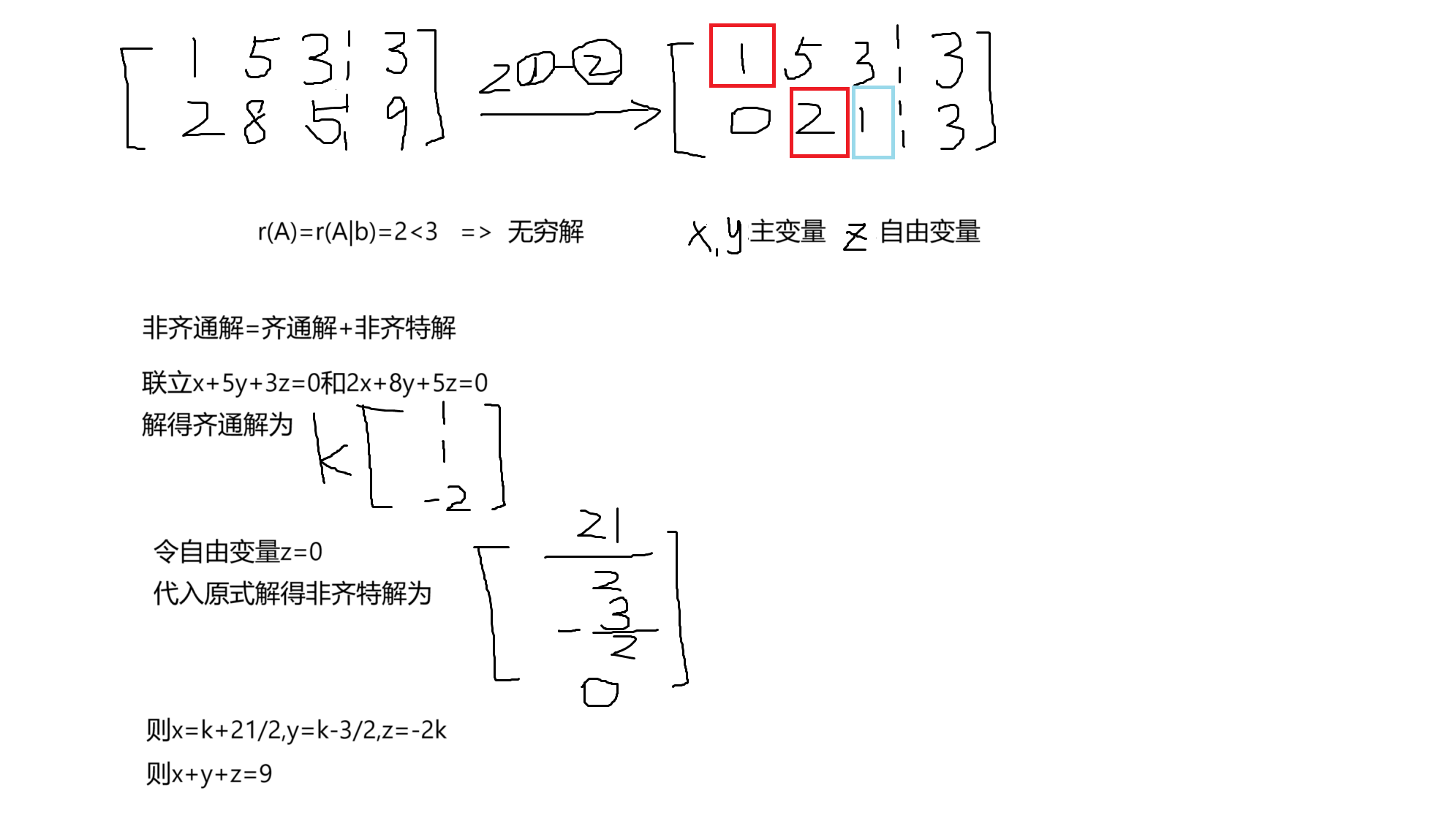 已知x+5y+3z=3,2x+8y+5z=9,求x+y+z的值