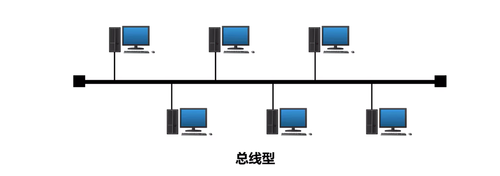 总线型:使用单根传输线把计算机连接起来,优点是建网容易,增减节点方便,节省线路;缺点是重负载时通信效率不高,总线任一一处出现故障则全网瘫痪。