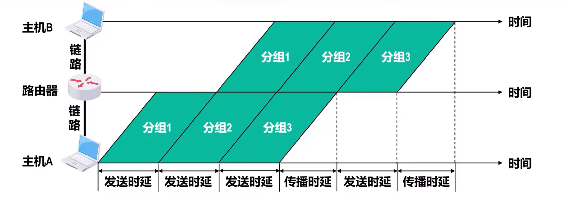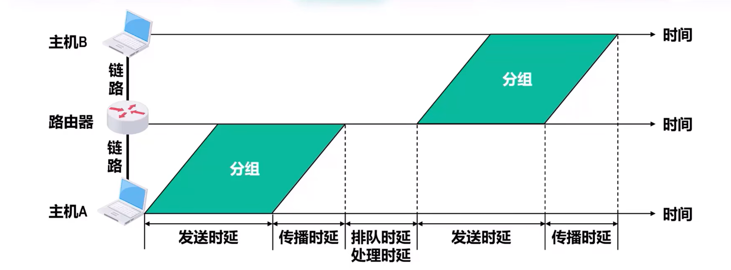 简单起见未画排队时延和处理时延