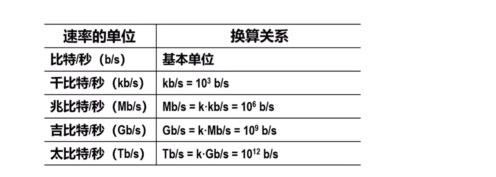 单位:b/s(kb/s,Mb/s,Gb/s,Tb/s)