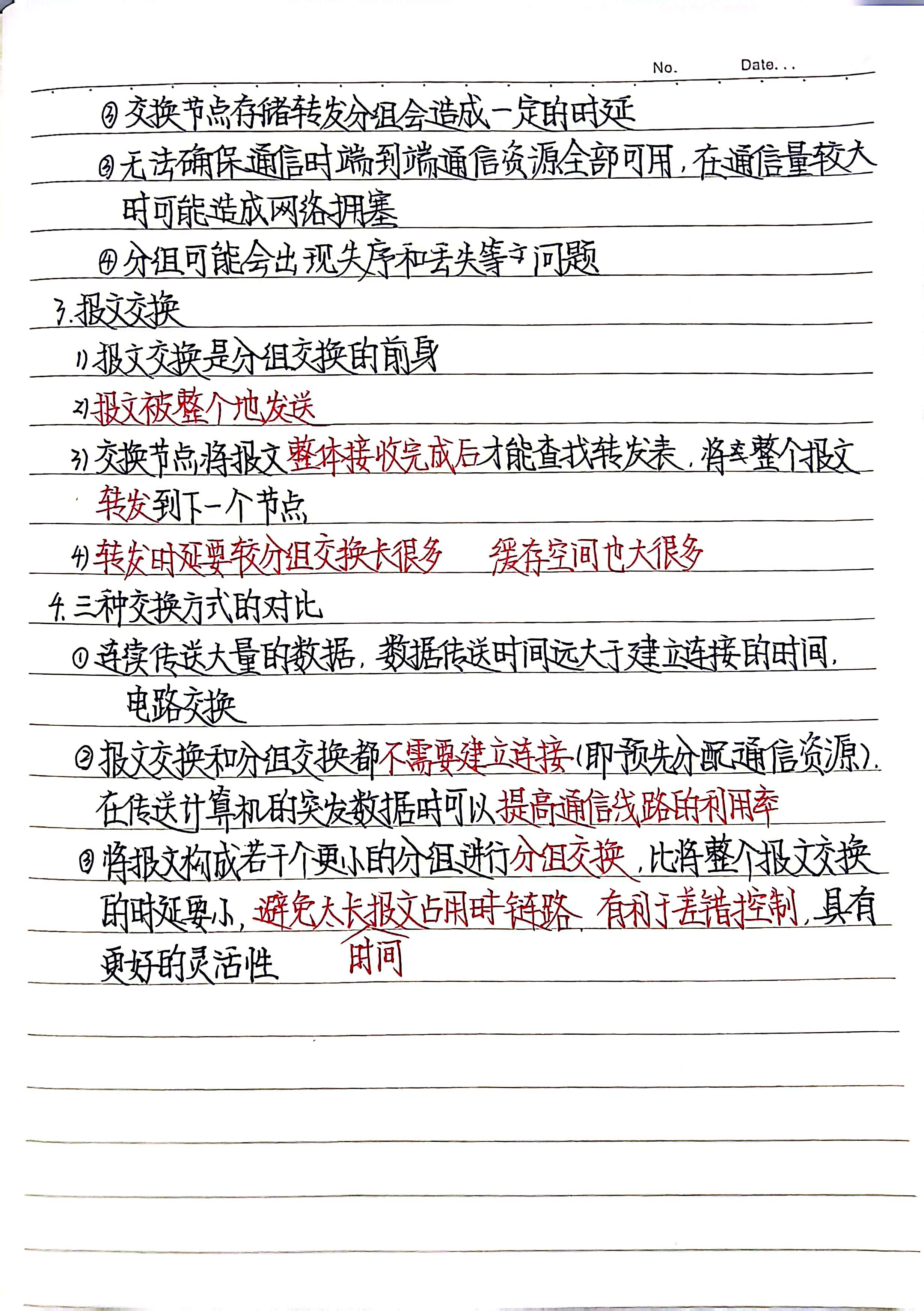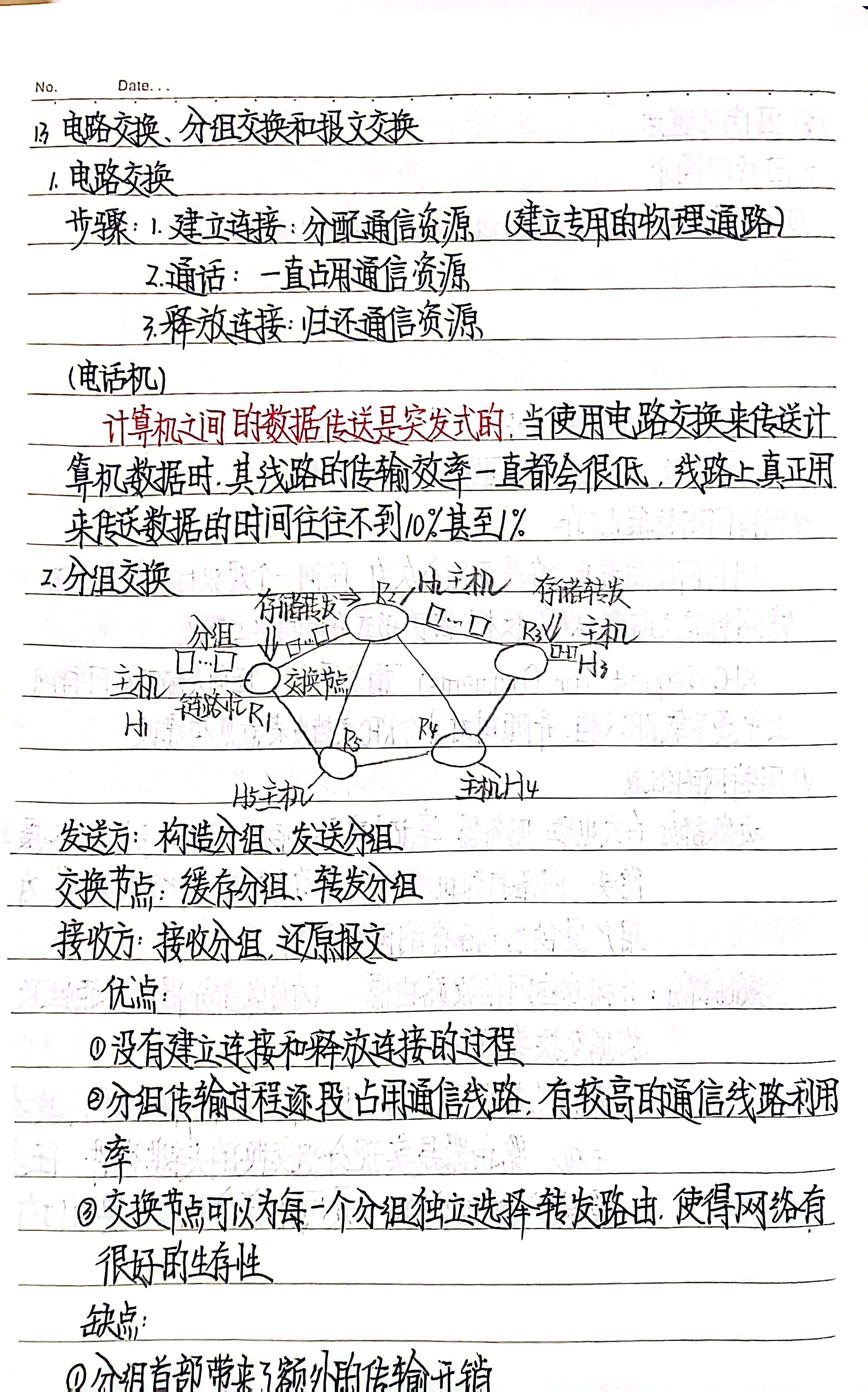 分为电路交换、分组交换、报文交换(详情内容见1.3)