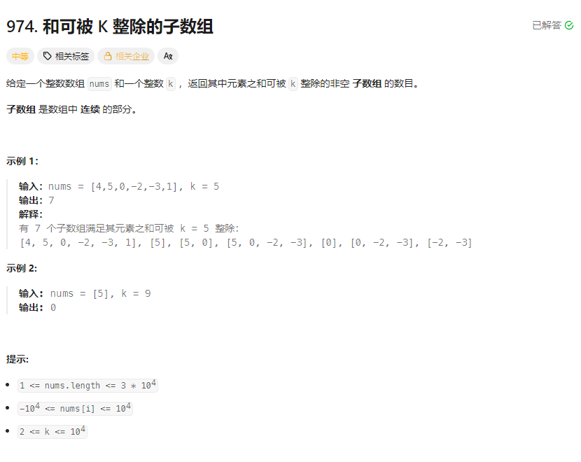 这种情况代表着原数组下标0到 i 点模上 k 等于0,导致 a = 0,此时哈希表是里面没有保存 a%k = 0,所以我们要提前放到哈希表里面。