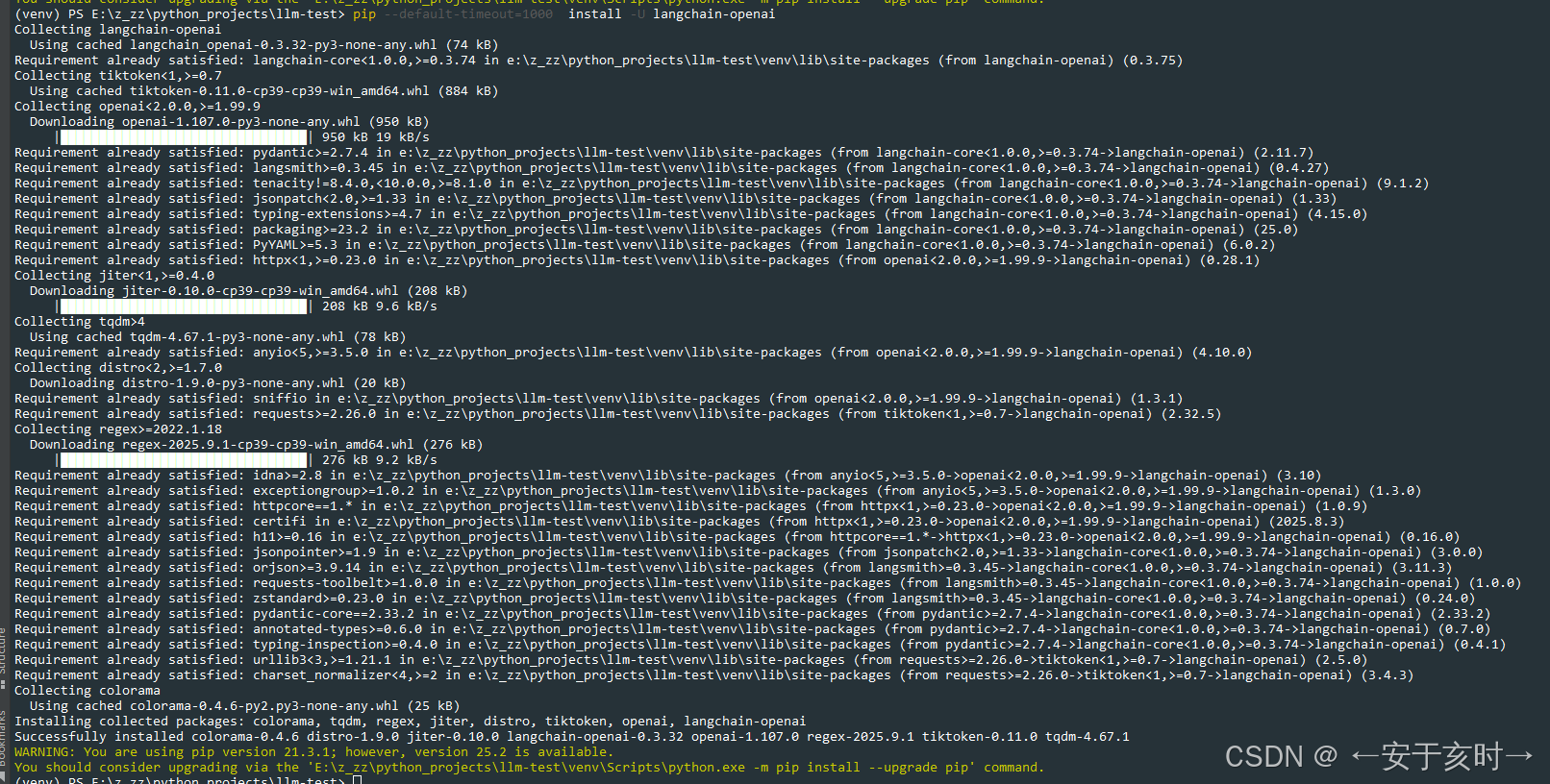 设置超时时间: pip --default-timeout=1000 install -U langchain-openai