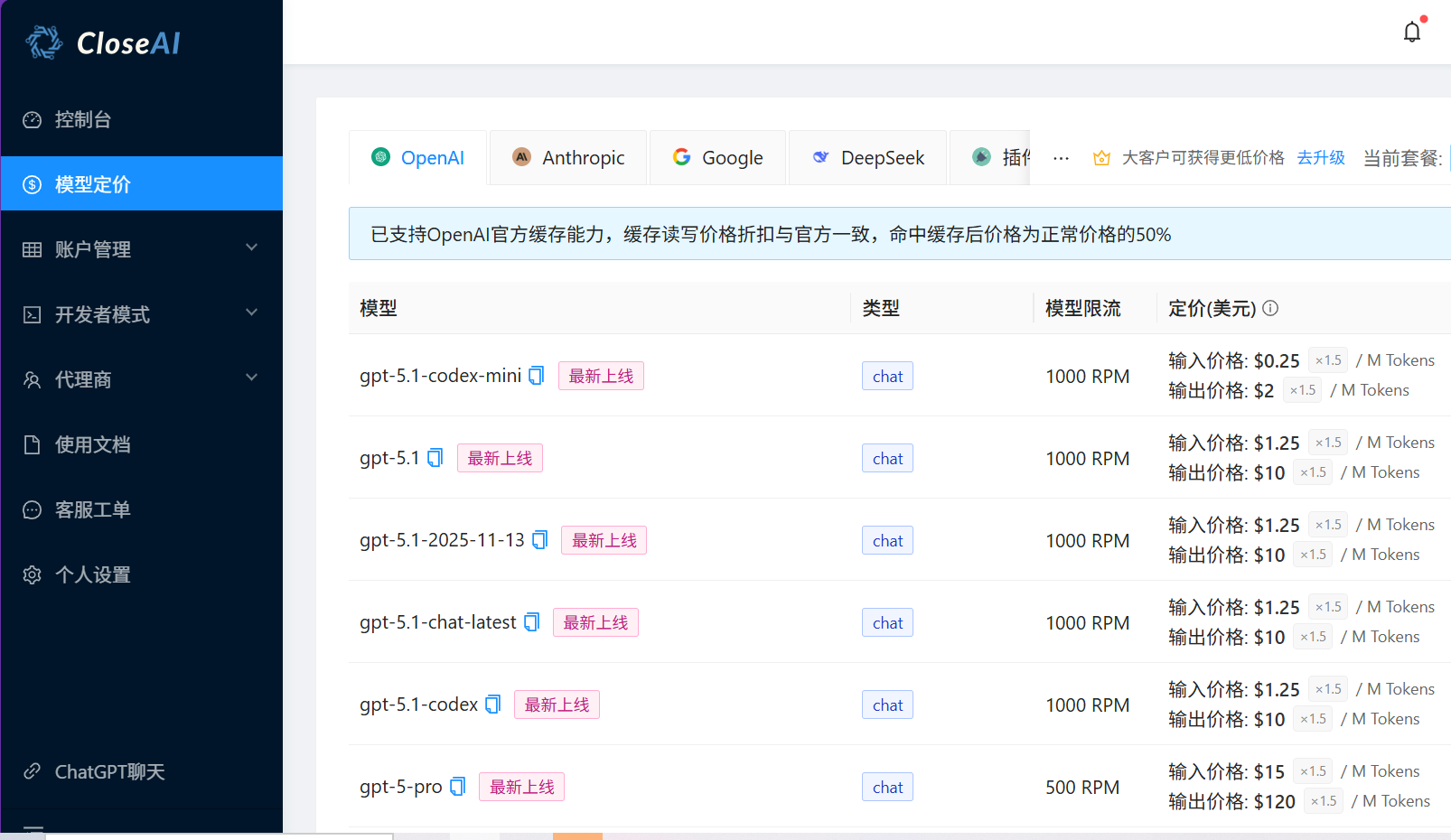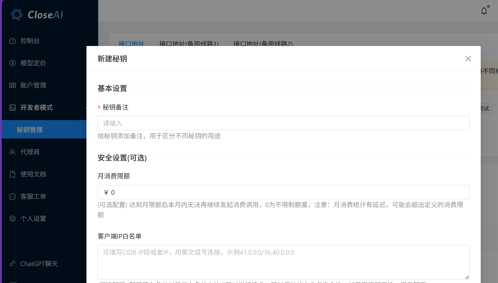 众所周知,由于某些限制,OpenAI的服务需要通过一定的“中转站”才能被大陆的用户使用。当然,也可以使用deepseek、阿里千问等模型的api服务,这些都是开放的。我是通过CloseAI来使用OpenAI的api服务。