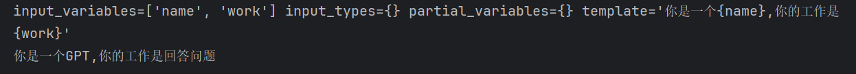 prompt_template = PromptTemplate.from_template("你是一个{name},你的工作是{work}")