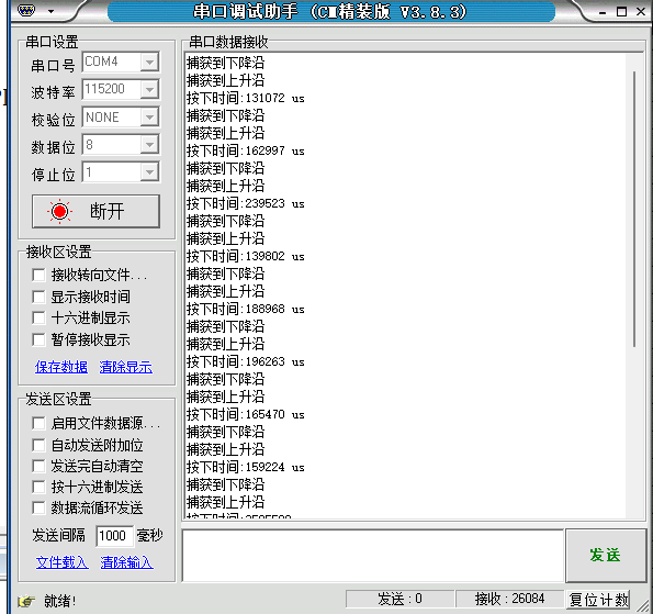 使用定时器2通道2来捕获按键2按下时间,并通过串口打印。