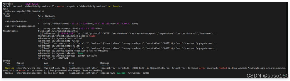 创建 CLB 类型的 Ingress 报错,错误码E6009。如下图所示: