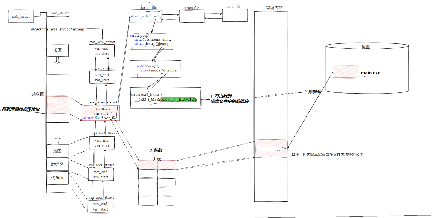 我们的程序去使用动态库本质是使用虚拟进程地址空间,进行函数位置的跳转,所以需要把动态库映射到进程的地址空间中。