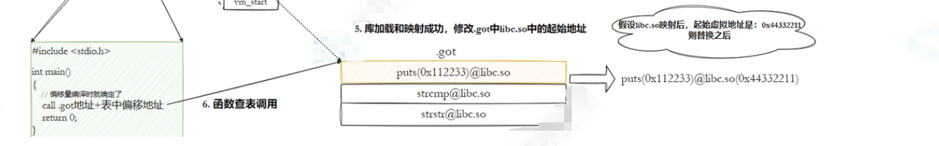 _strat 位置下的作用有设置堆栈:1.为程序创建⼀个初始的堆栈环境。2. 初始化数据段:将程序的数据段(如全局变量和静态变量)从初始化数据段复制到相应的内存位置,并清零未初始化的数据段。3. 动态链接:这是关键的⼀步, _start 函数会调用动态链接器的代码来解析和加载程序所依赖的动态库(shared libraries)。动态链接器会处理所有的符号解析和重定位,确保程序中的函数调用和变量访问能够正确地映射到动态库中的实际地址。说白了就是进行加载时重定向,修改函数的调用位置那么具体是如何进行修改呢?