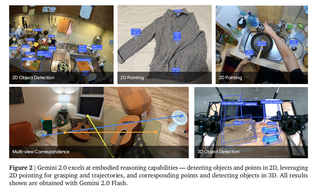 Gemini Robotics-ER:展示强大的物理世界推理能力,包括3D感知、指向、轨迹和抓取预测。