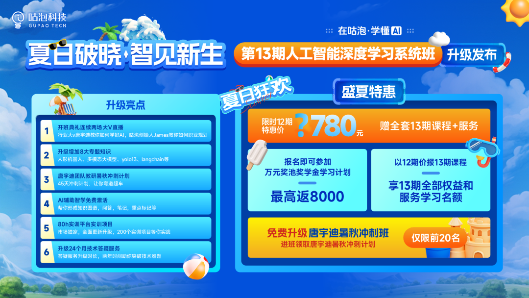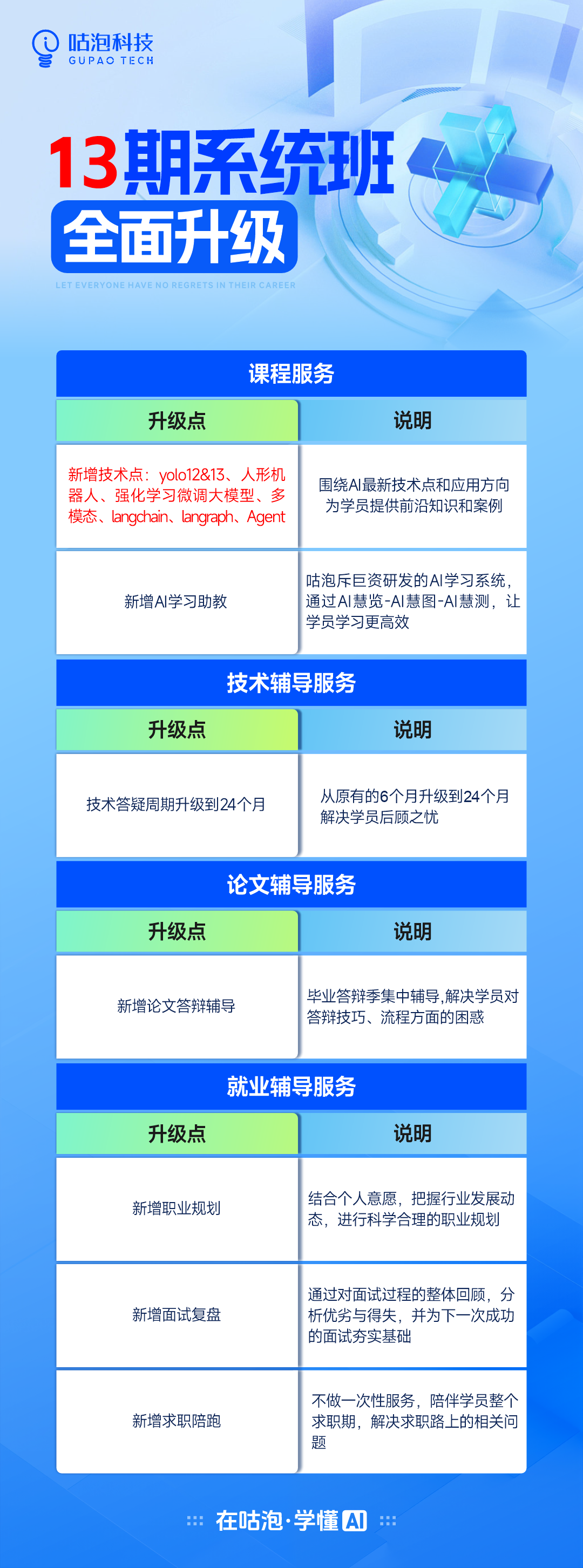 唐宇迪老师带队的AI涨薪就业课程重磅升级,课程对标大厂P7+,符合大厂的招聘要求,能够帮助大家就业提升加薪,系统掌握深度学习必备核心技术点。