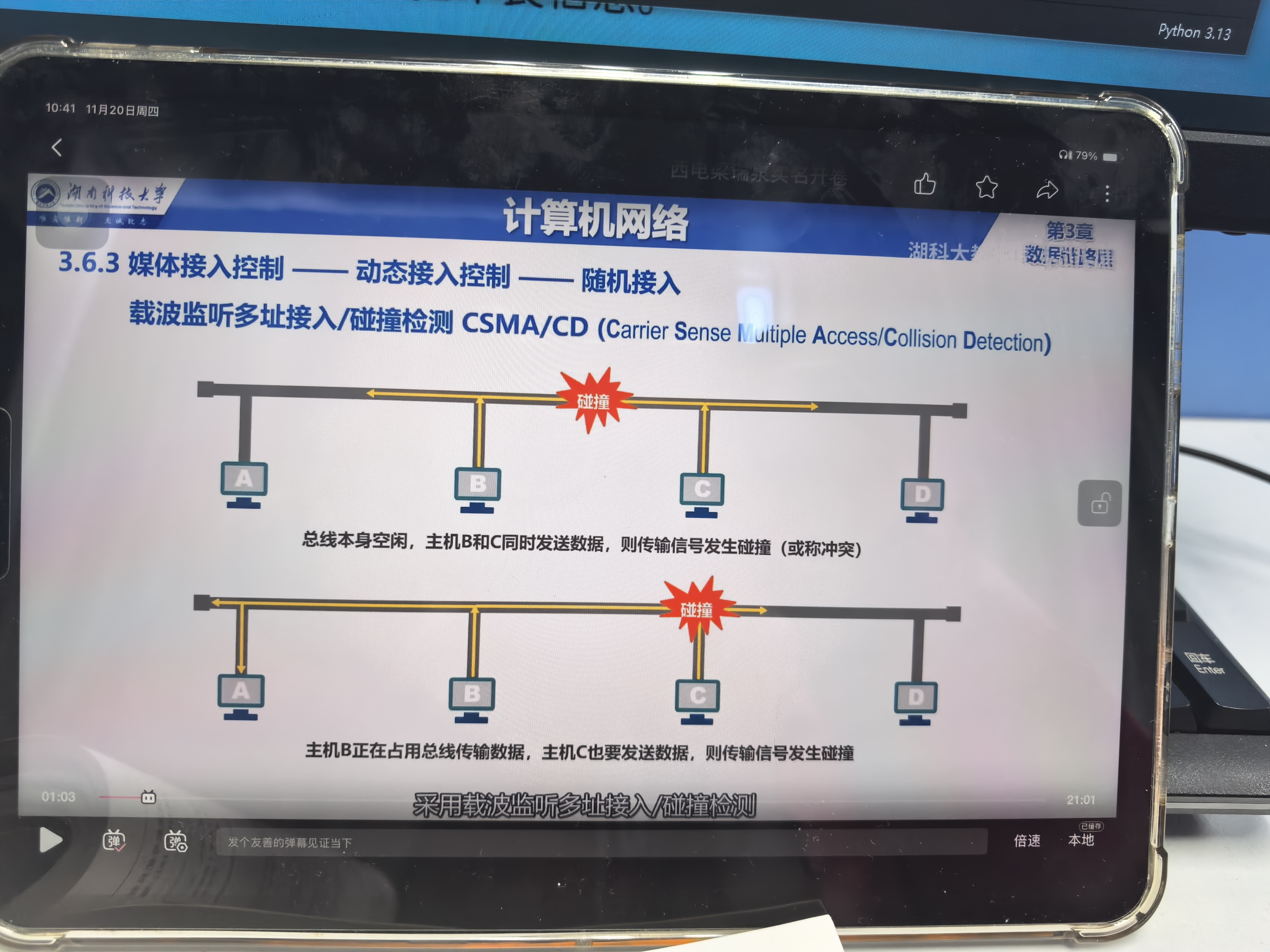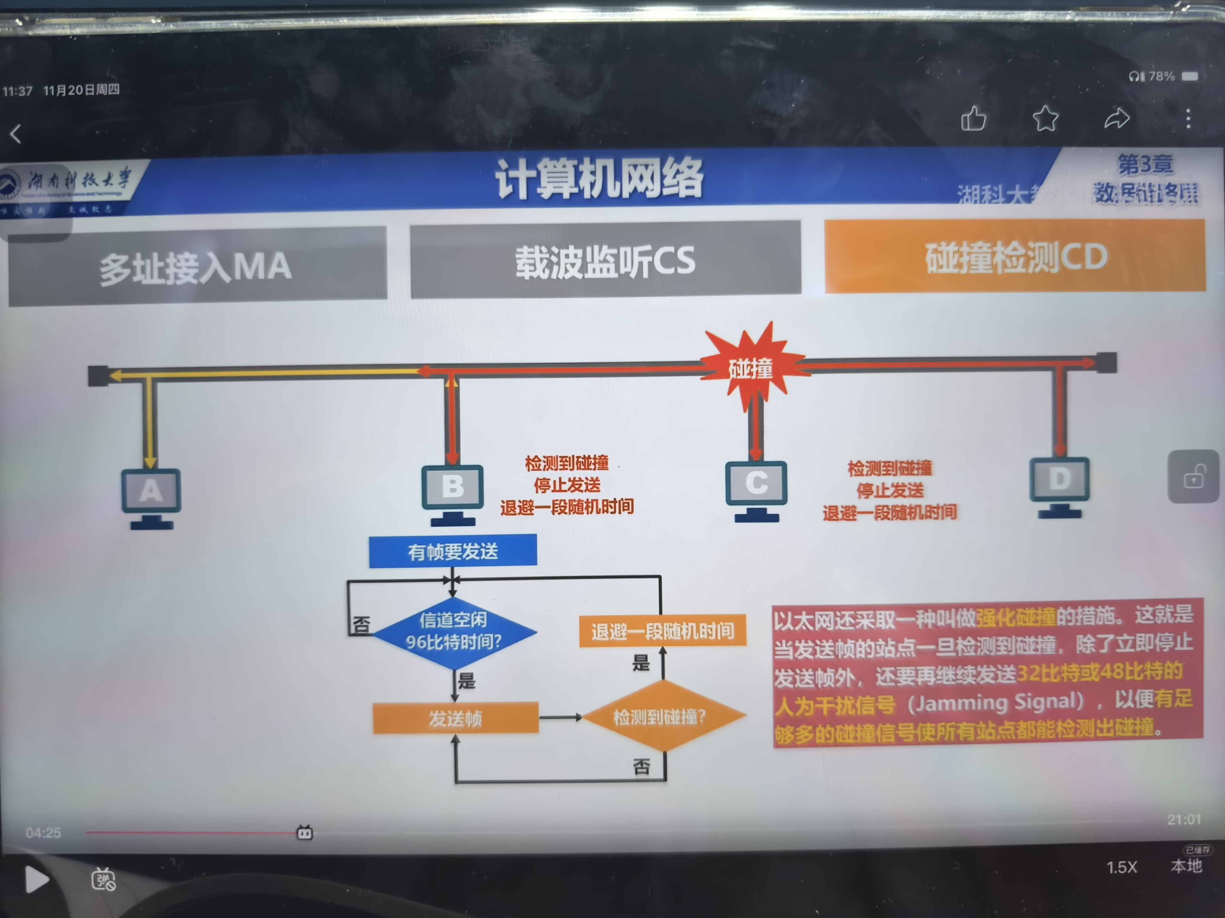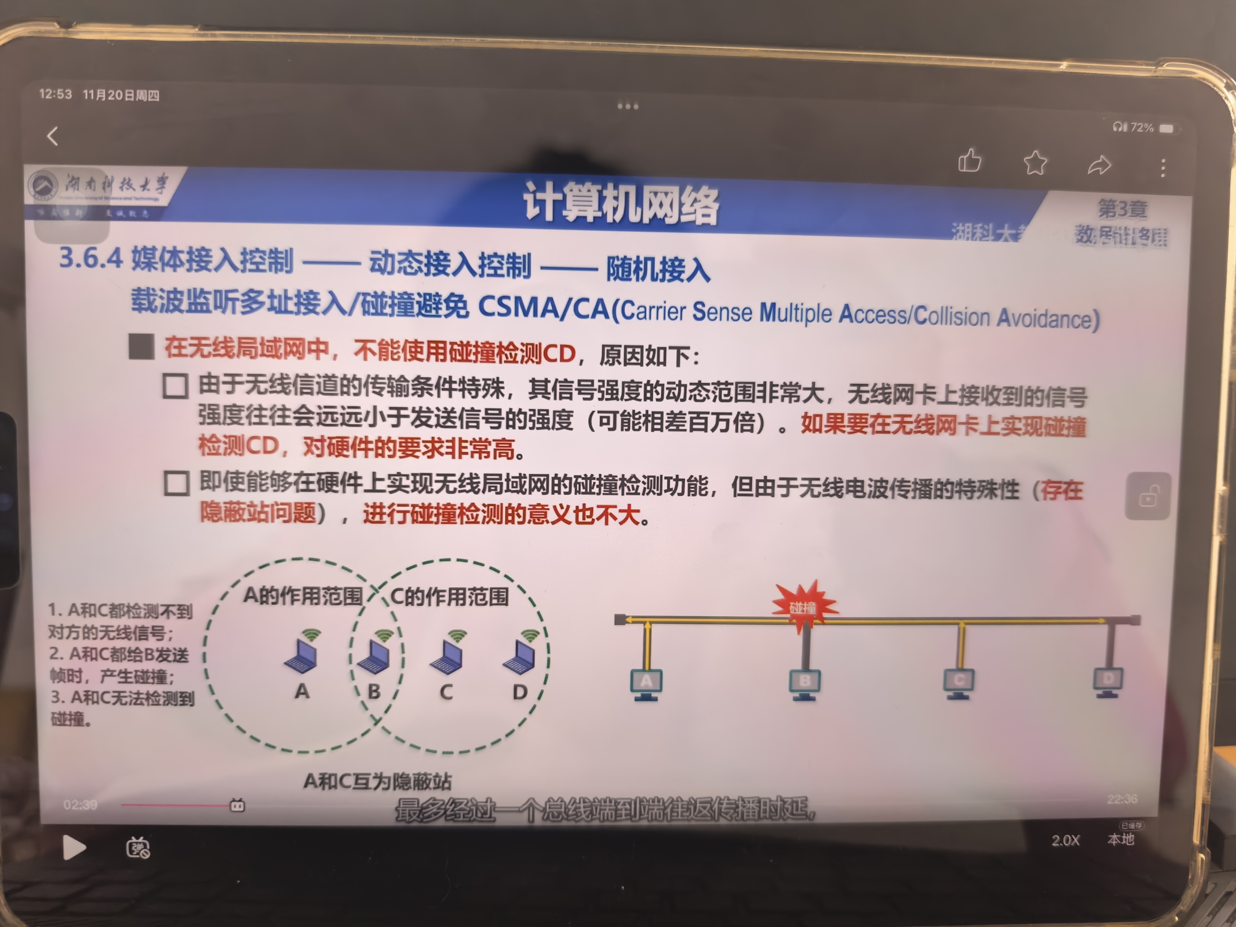 但这就有一个问题,我看的是同时监测同时发的话,就会碰撞,然后监听之后发现碰撞立刻退避一段时间再发送,双方皆如此。