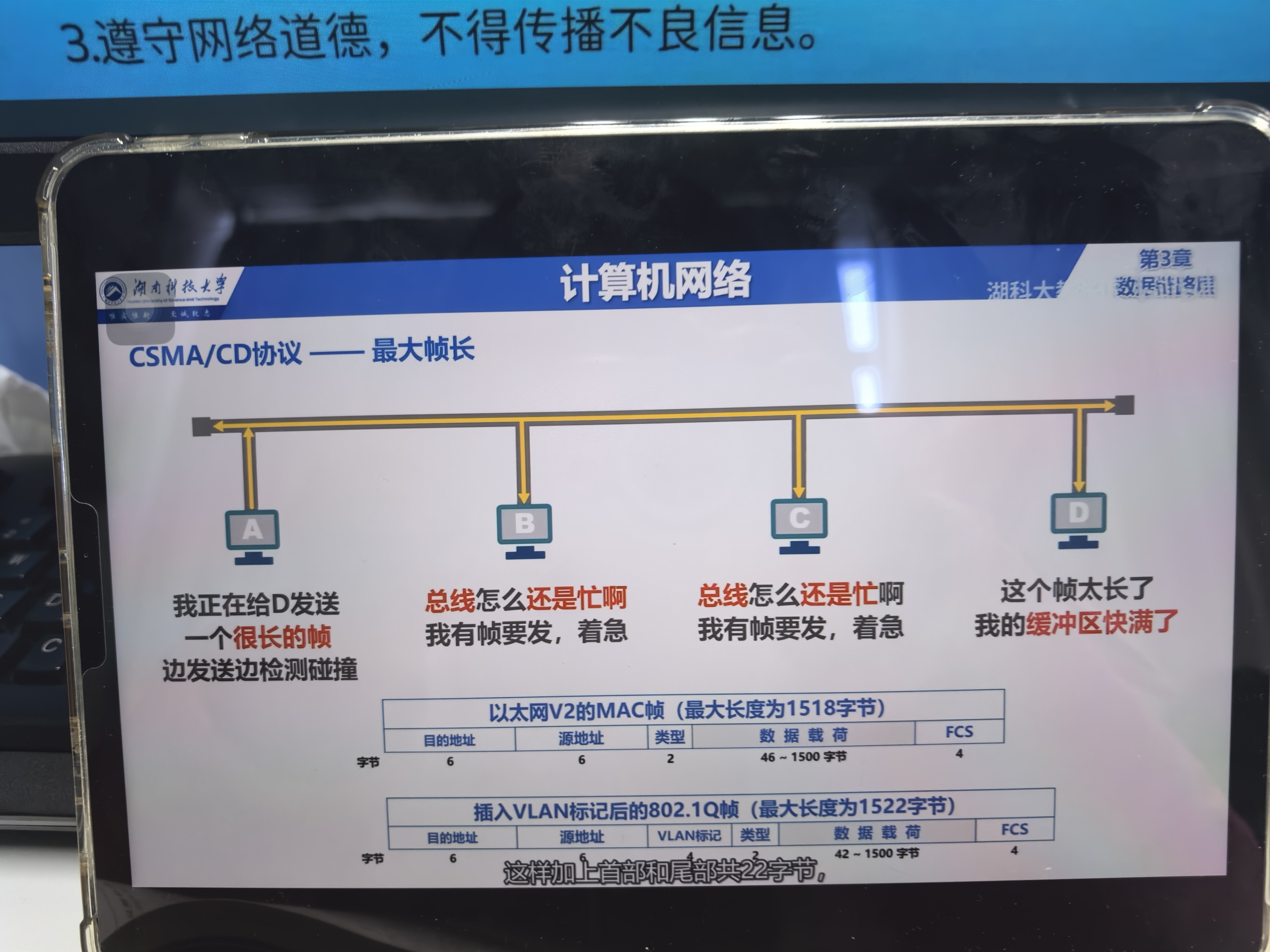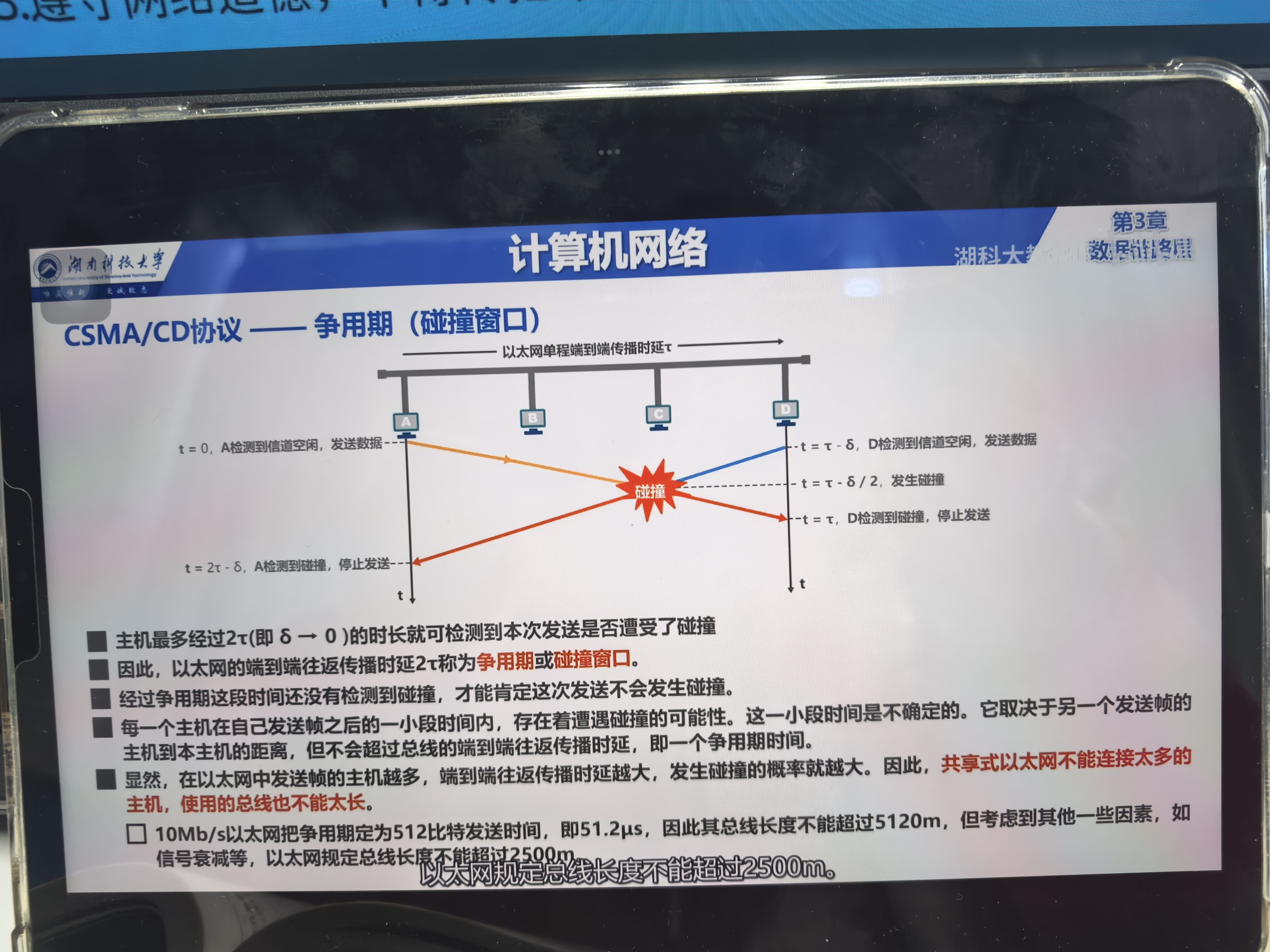(这也是以太网要求“最小帧长为64字节”的原因:确保即使是最远的设备之间发生碰撞,发送方也能在发送完帧之前检测到冲突。)