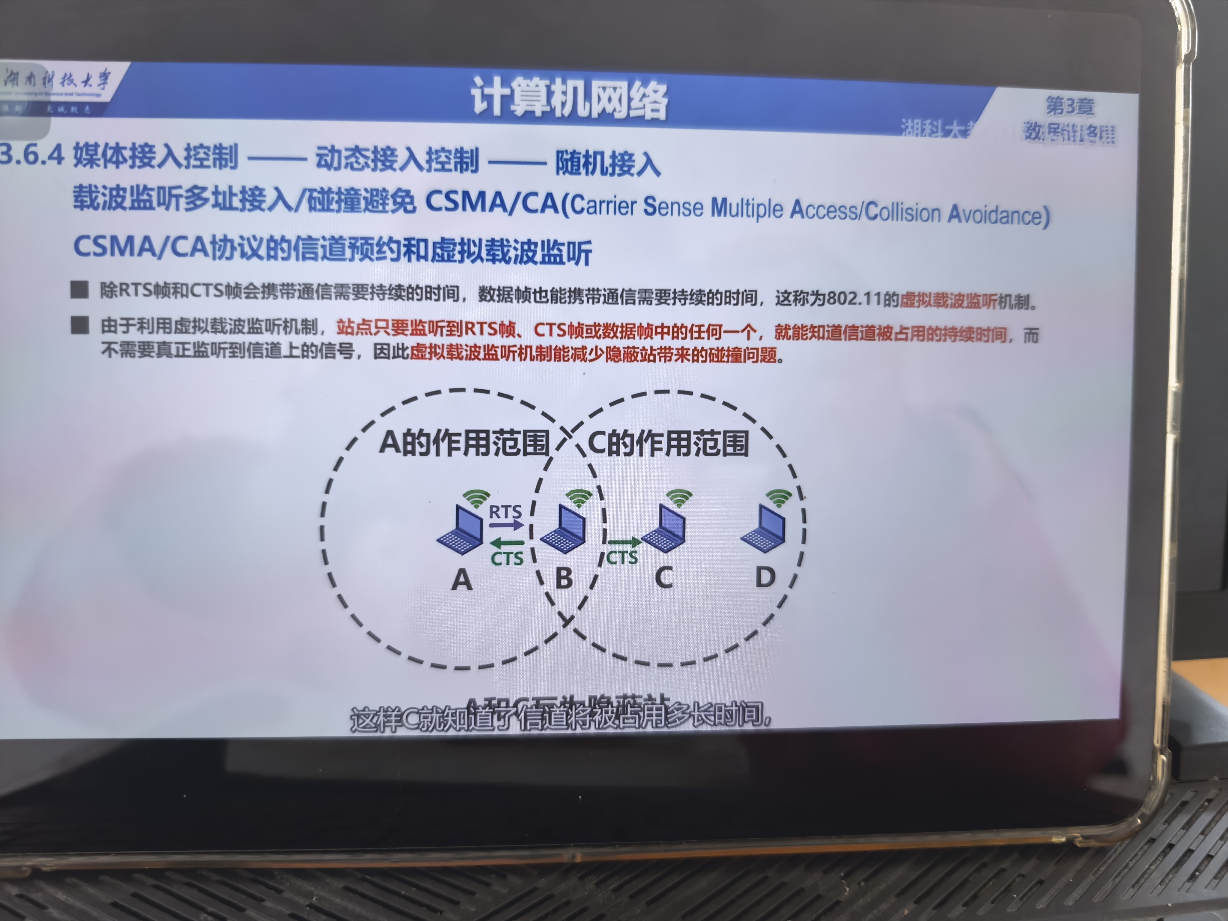 这个是利用b来避免信道冲突,A发送给b之后b就广播给要发什么东西。