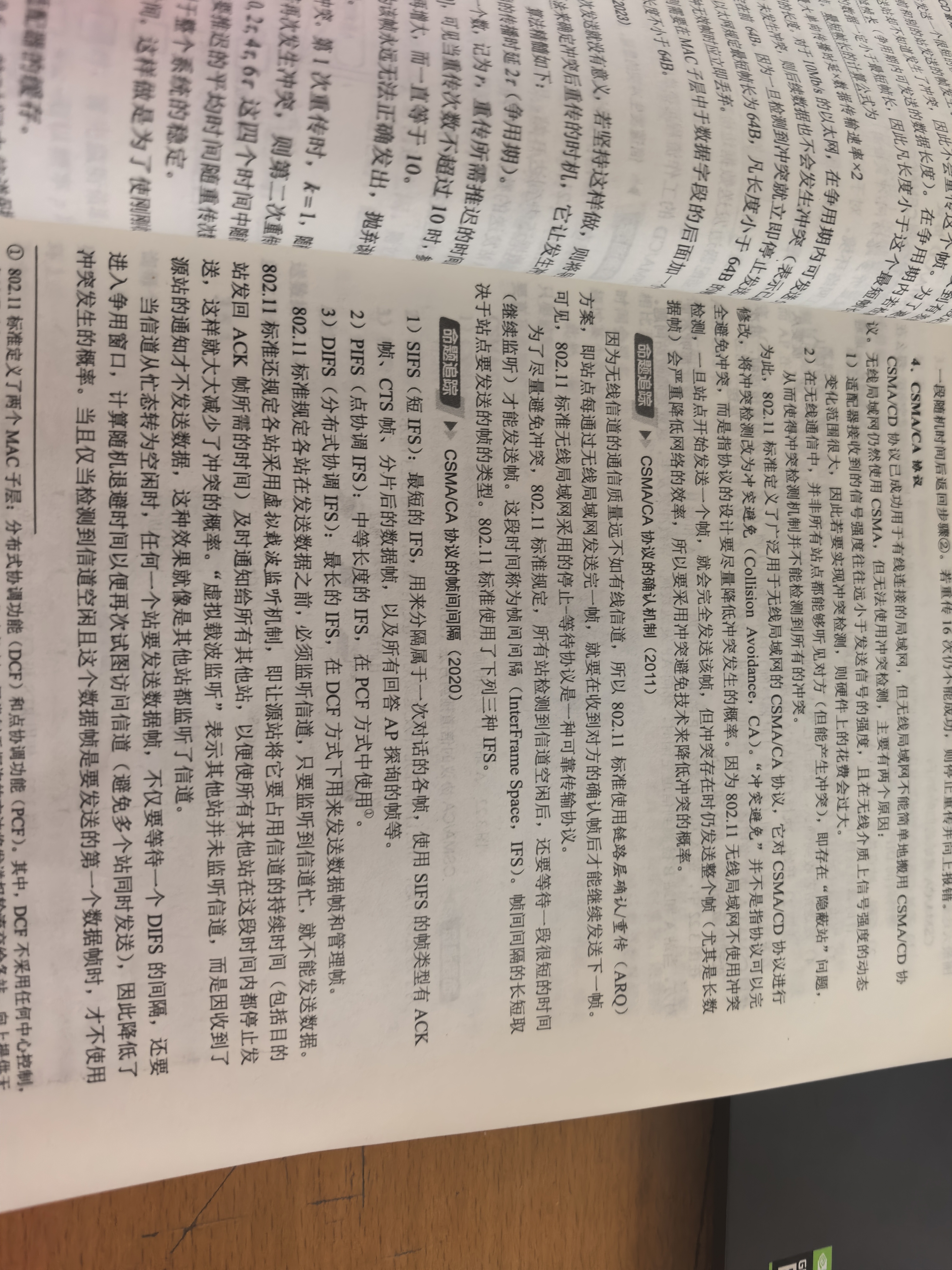 1. 发送前检测:先检测信道空闲(且满足96比特时间要求),再开始发送。