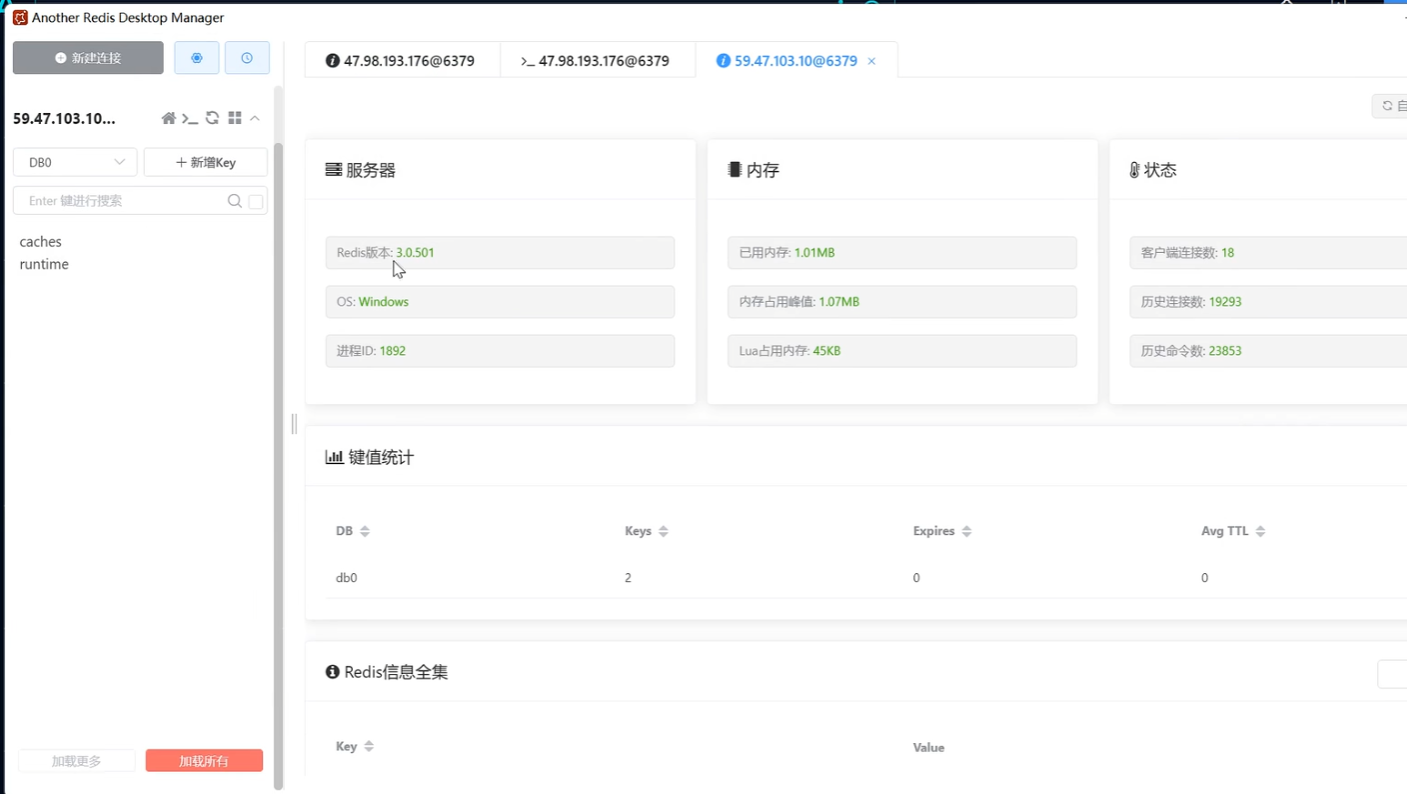 这里我们尝试连接一下,利用another redis desktop manager工具