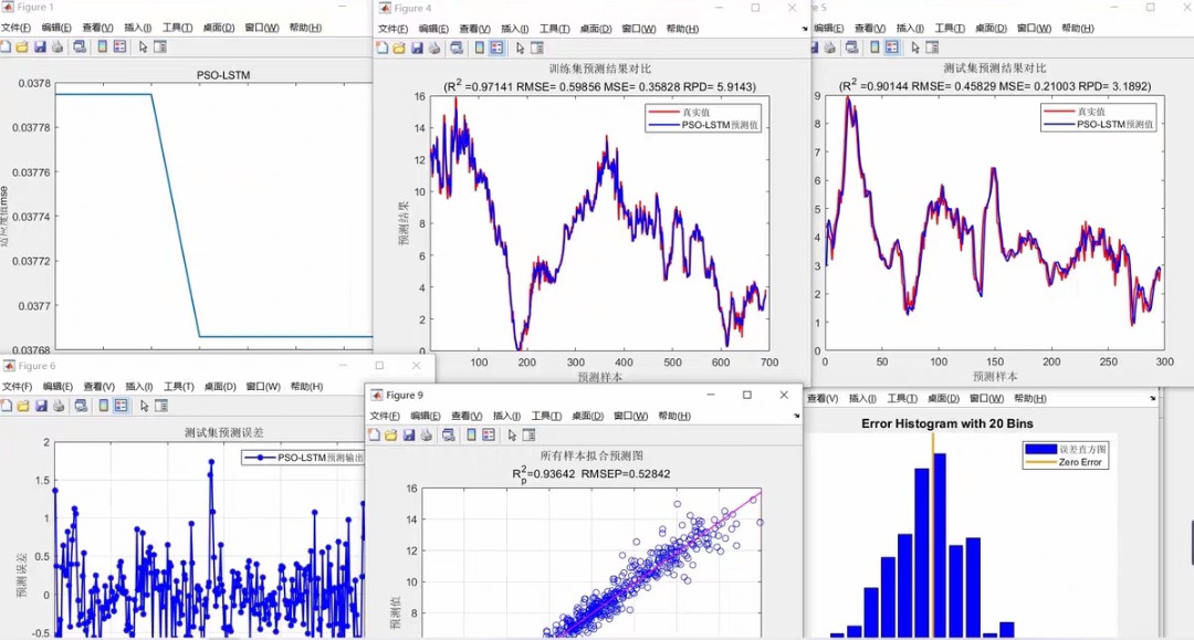 trainingOptions设置训练的参数,如优化器为adam,最大训练轮数、学习率等参数。这些参数对模型训练效果有重要影响。 - PSO优化部分:初始化粒子群的位置、速度等信息,在每次迭代中,根据粒子位置调整LSTM网络的隐藏层神经元数量,训练网络并计算适应度(这里用均方误差衡量),更新粒子的最优位置和全局最优位置,最后根据公式更新粒子速度和位置,确保参数在合理范围内。