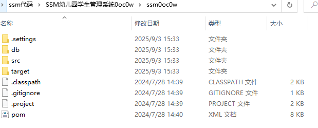 SSM(Spring + Spring MVC + MyBatis)框架作为目前主流的 Java EE 开发框架,具有轻量级、耦合度低、易于维护和扩展等优势,能够满足幼儿园学生管理系统对稳定性、高效性和可扩展性的需求。基于此,开发一套功能完善、操作简便的 SSM 幼儿园学生管理系统,成为解决当前幼儿园管理痛点、提升管理效率和服务质量的重要途径。