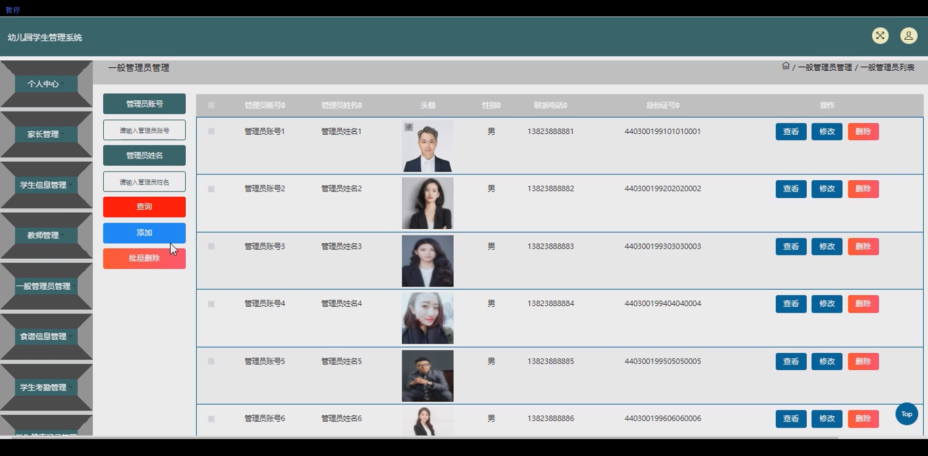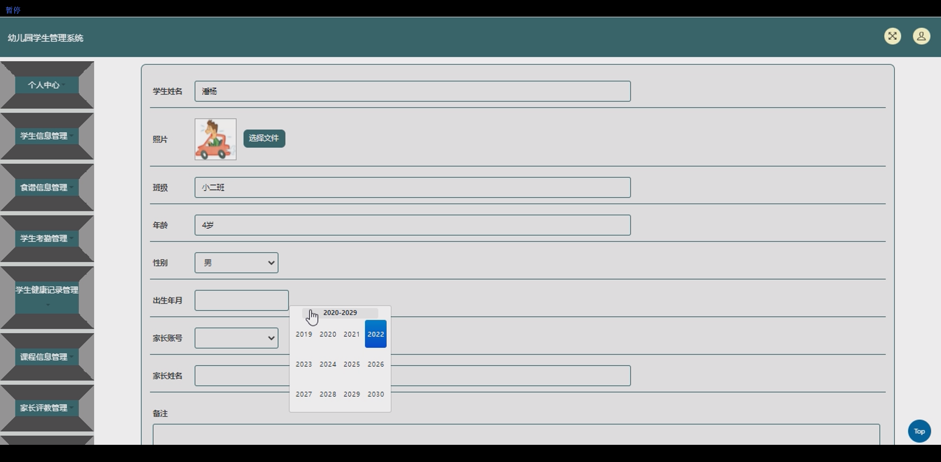 - 对幼儿园管理而言:系统整合了家长、学生信息、教师、一般管理员、食谱信息、学生考勤、学生健康记录、课程信息、家长评教、教学计划、学生成长计划、过敏信息等核心功能模块,实现了幼儿园管理的数字化和一体化。管理员和教师无需再进行繁琐的人工记录和数据整理工作,极大地减少了工作量,提高了管理效率和数据准确性。