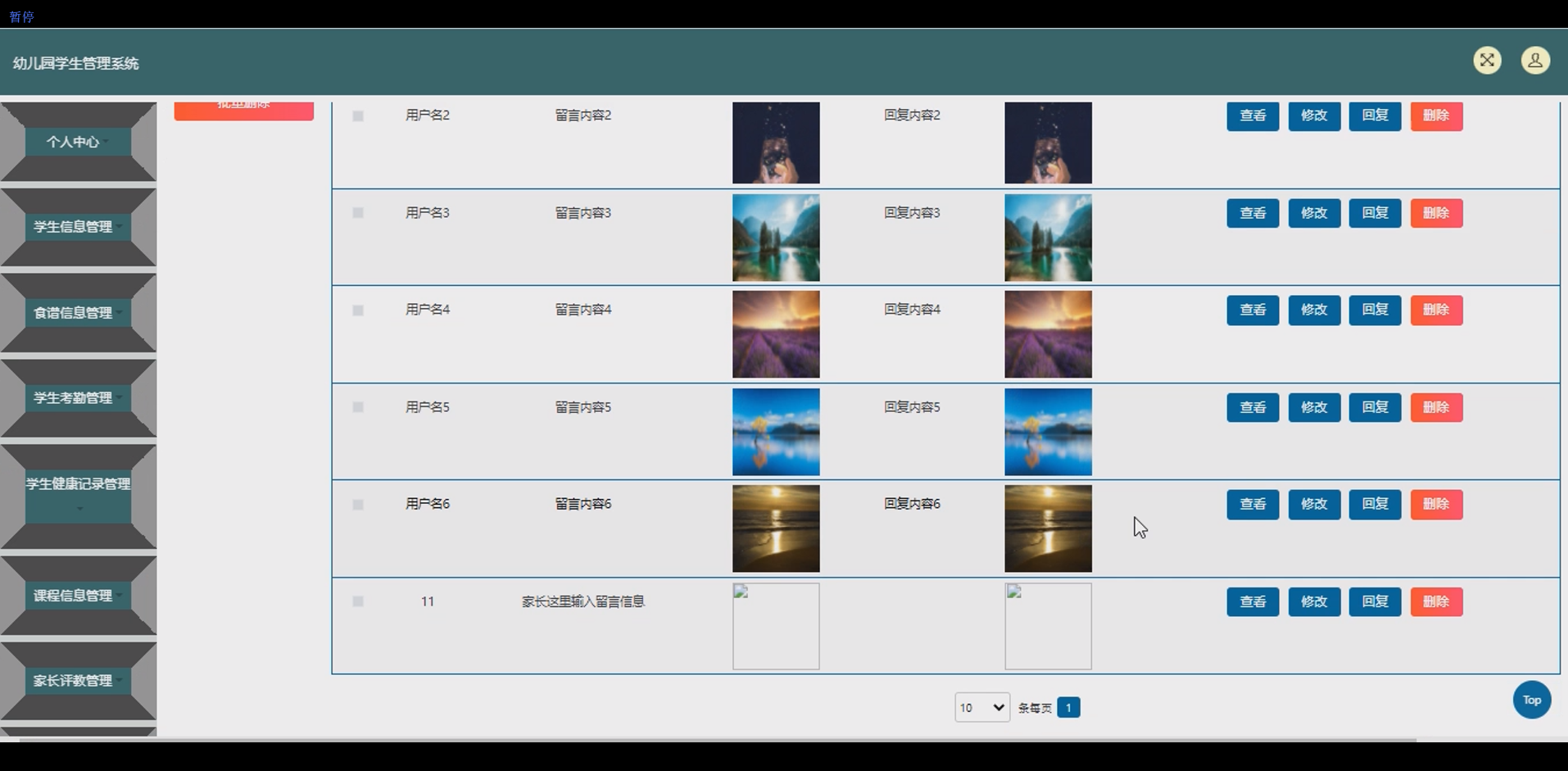 - 一套功能完善的 SSM 幼儿园学生管理系统:系统能够实现家长、学生信息、教师、一般管理员、食谱信息、学生考勤、学生健康记录、课程信息、家长评教、教学计划、学生成长计划、过敏信息等 11 个核心功能模块的功能需求,界面简洁美观,操作简便,运行稳定,能够满足幼儿园日常管理和家长沟通的需求。