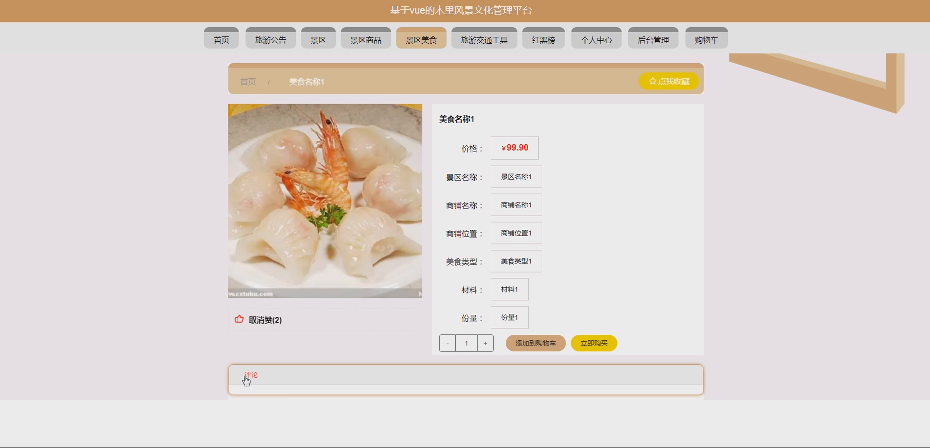 - 游客端:美食列表浏览(按分类 / 景区筛选)、美食详情查看、推荐餐厅导航。