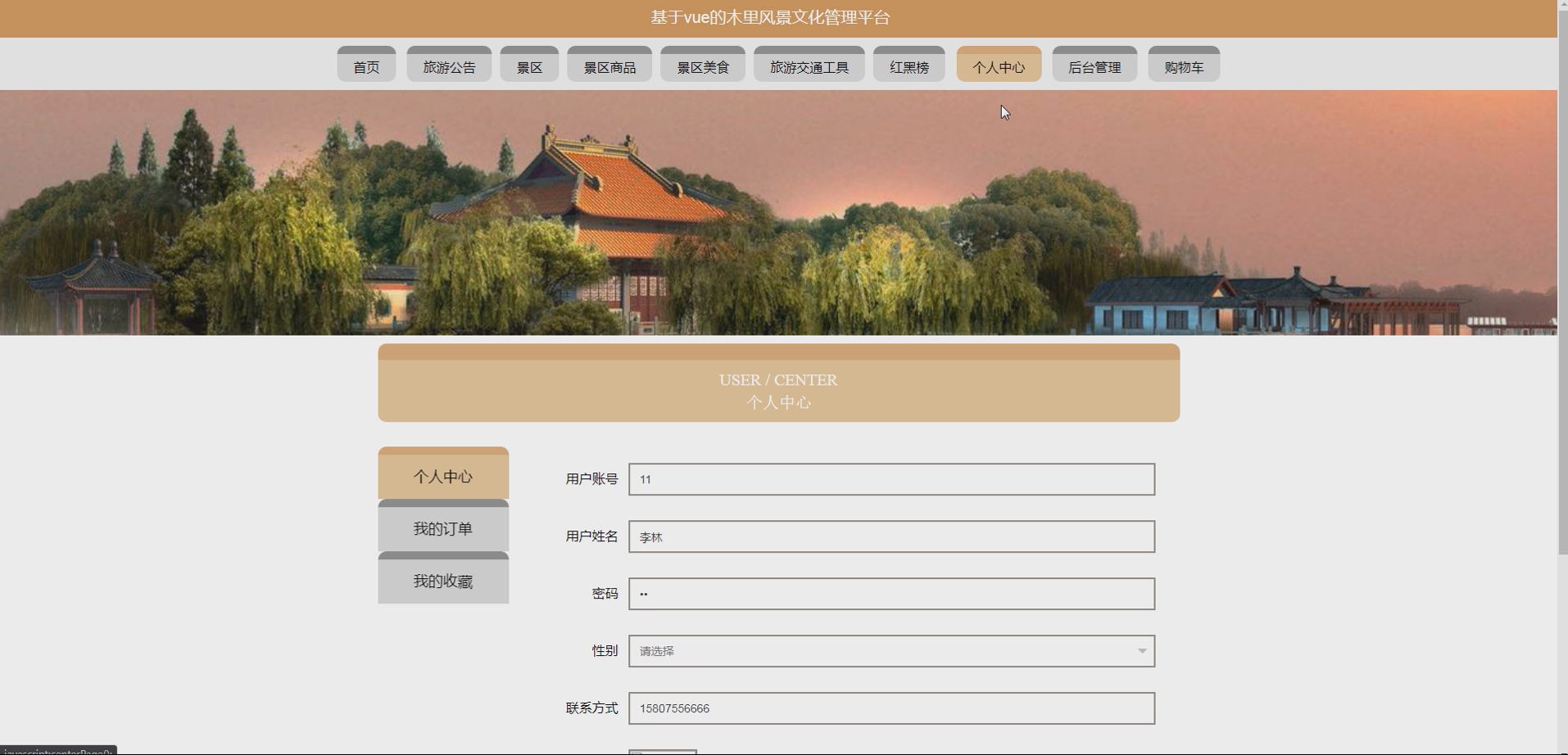 - 一套可运行的 “SSM 基于 Vue 的木里风景文化管理平台”(包含前端界面与后端系统);