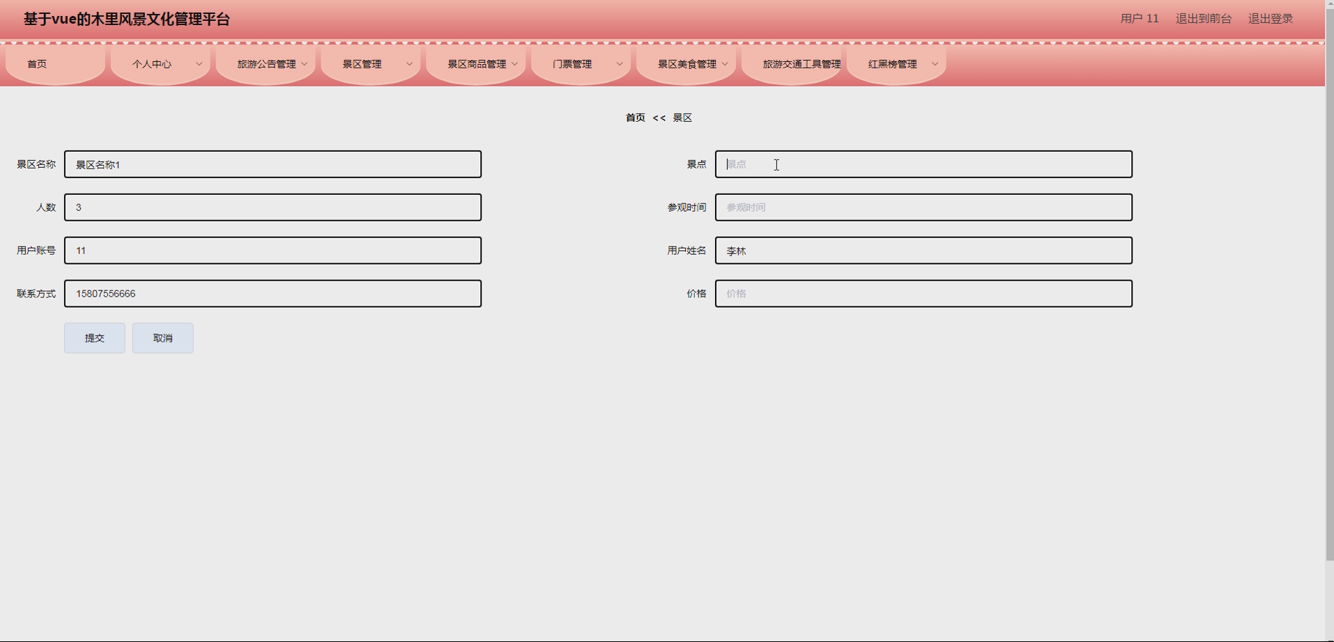- 管理员端:景区信息录入(名称、地址、简介、开放时间、门票价格、图片上传、所属文化标签)、景区信息编辑 / 删除、景区分类管理(自然景观、人文景观等);