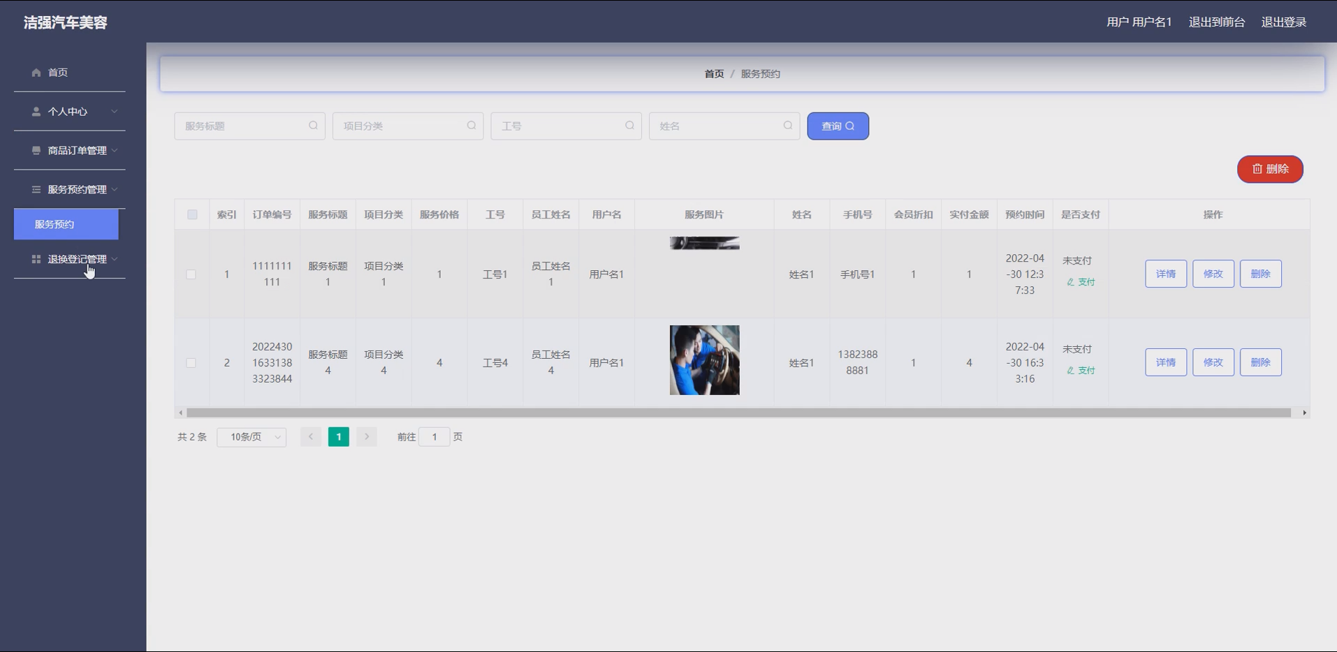 一套功能完善、运行稳定的SSM洁强汽车美容管理系统,能够实现用户、员工、商品、服务项目、会员等级、服务预约等模块的一体化管理。