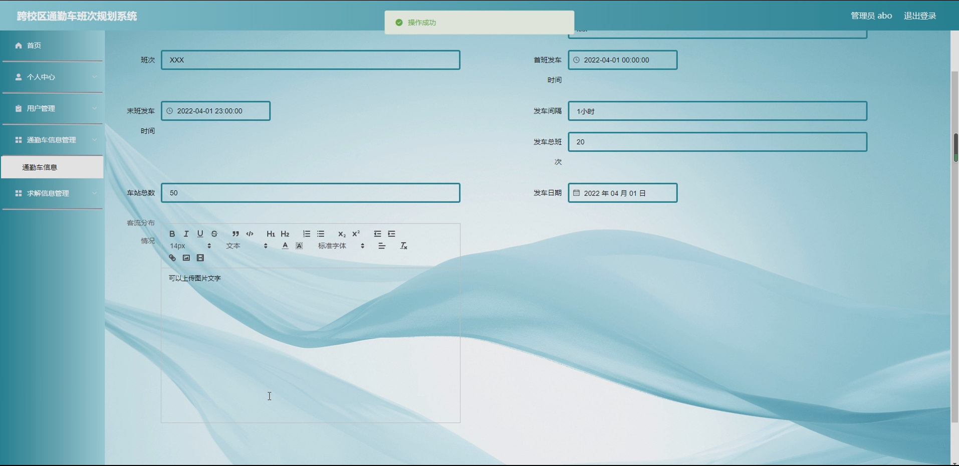 通过求解信息模块实现班次规划的智能化,结合师生出行需求、车辆运力等因素,为管理人员提供科学的班次调整建议。