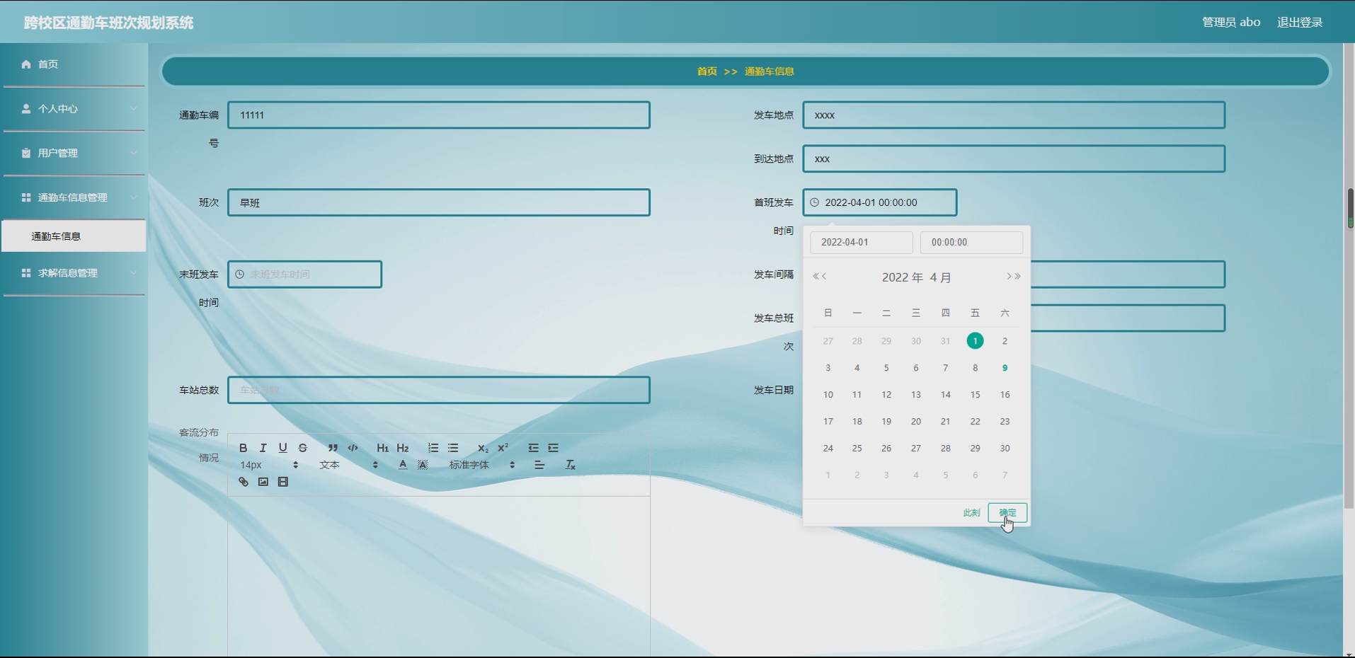 求解信息模块:收集师生出行需求数据(如出行时间、起点终点等),结合车辆运力、司机排班等信息,通过算法分析生成最优班次规划建议,为管理人员提供决策支持。