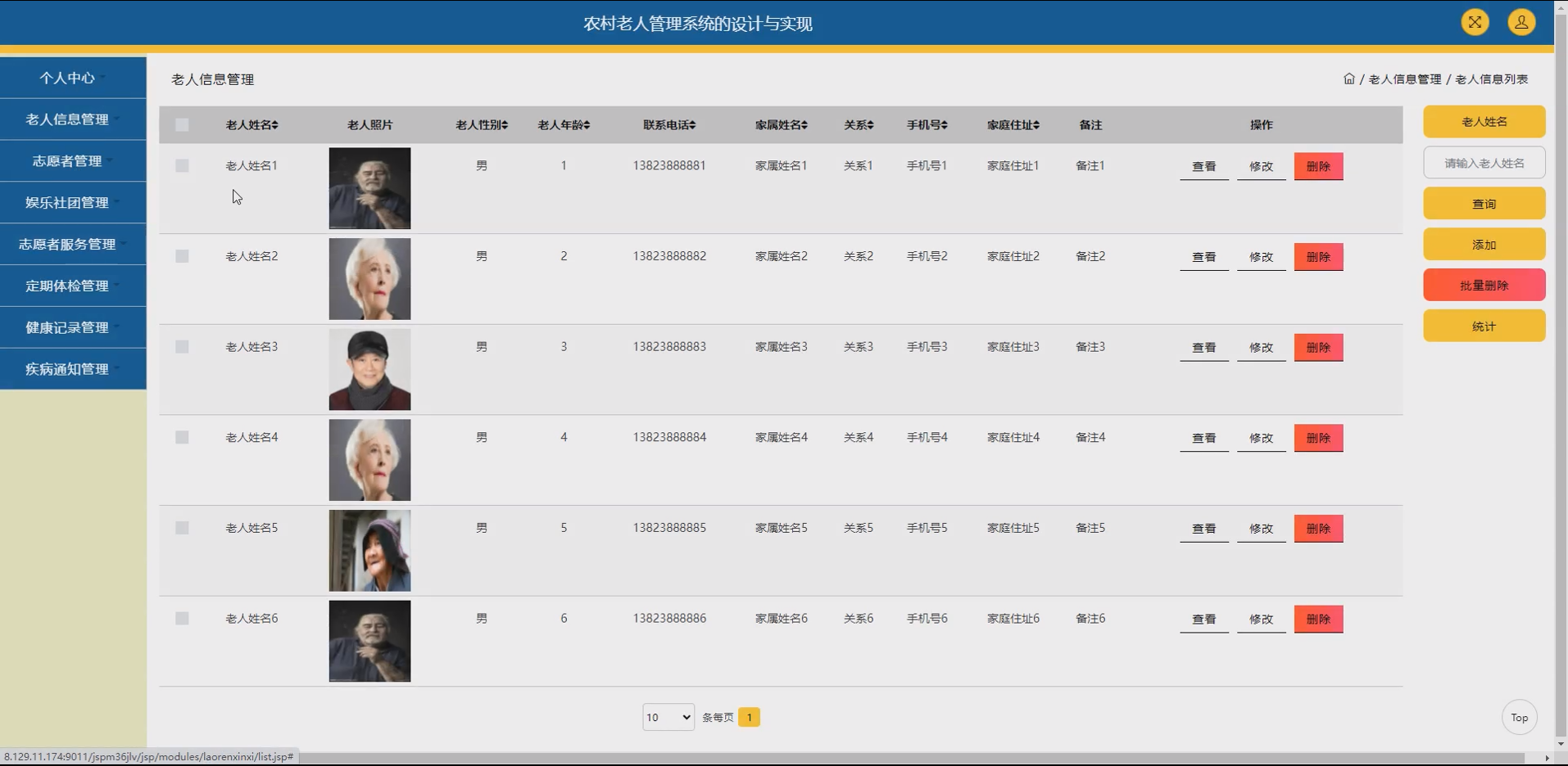 实现农村老人基本信息的高效管理,包括信息的录入、查询、修改、删除等功能,确保信息的准确性和完整性。