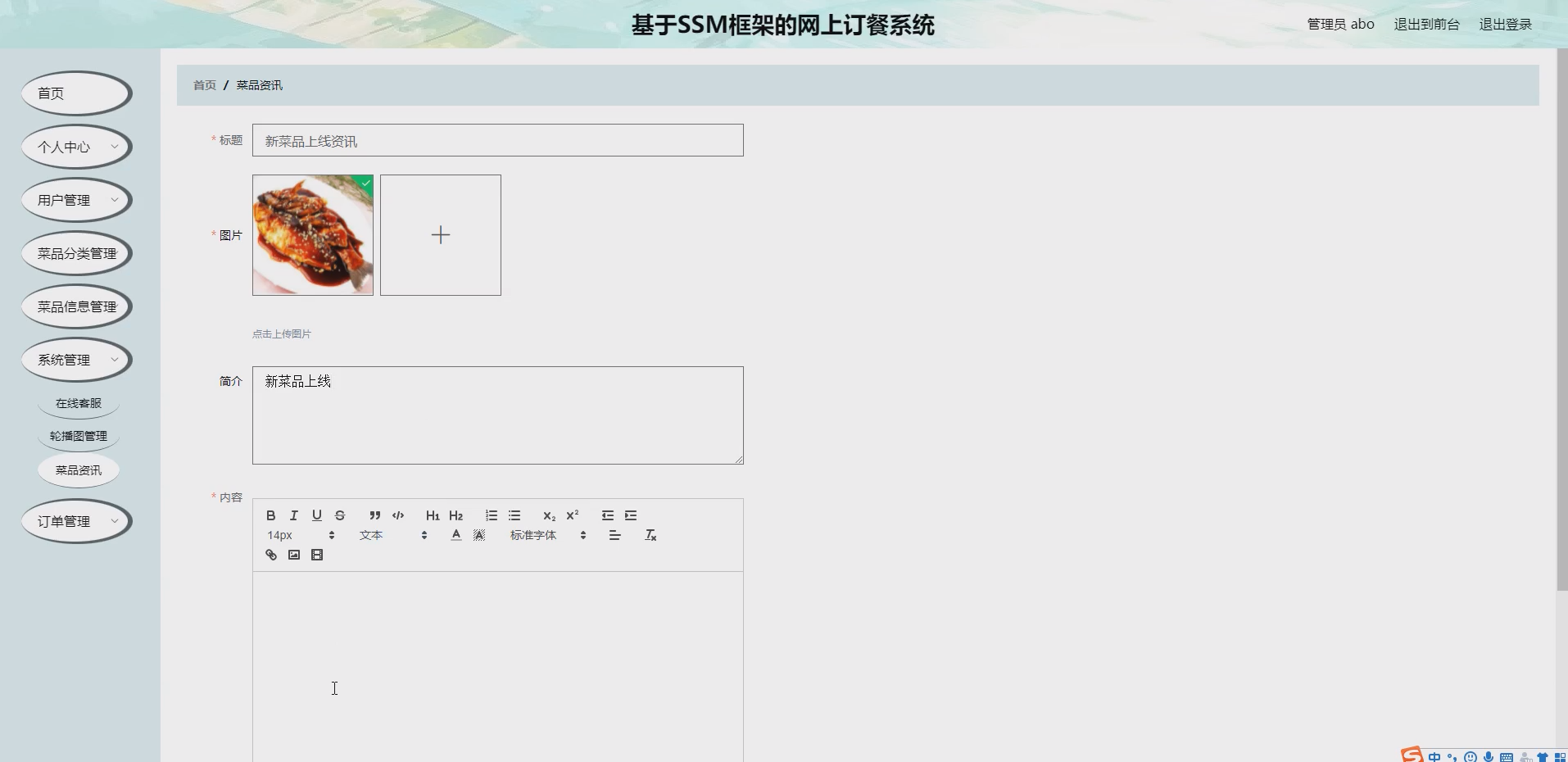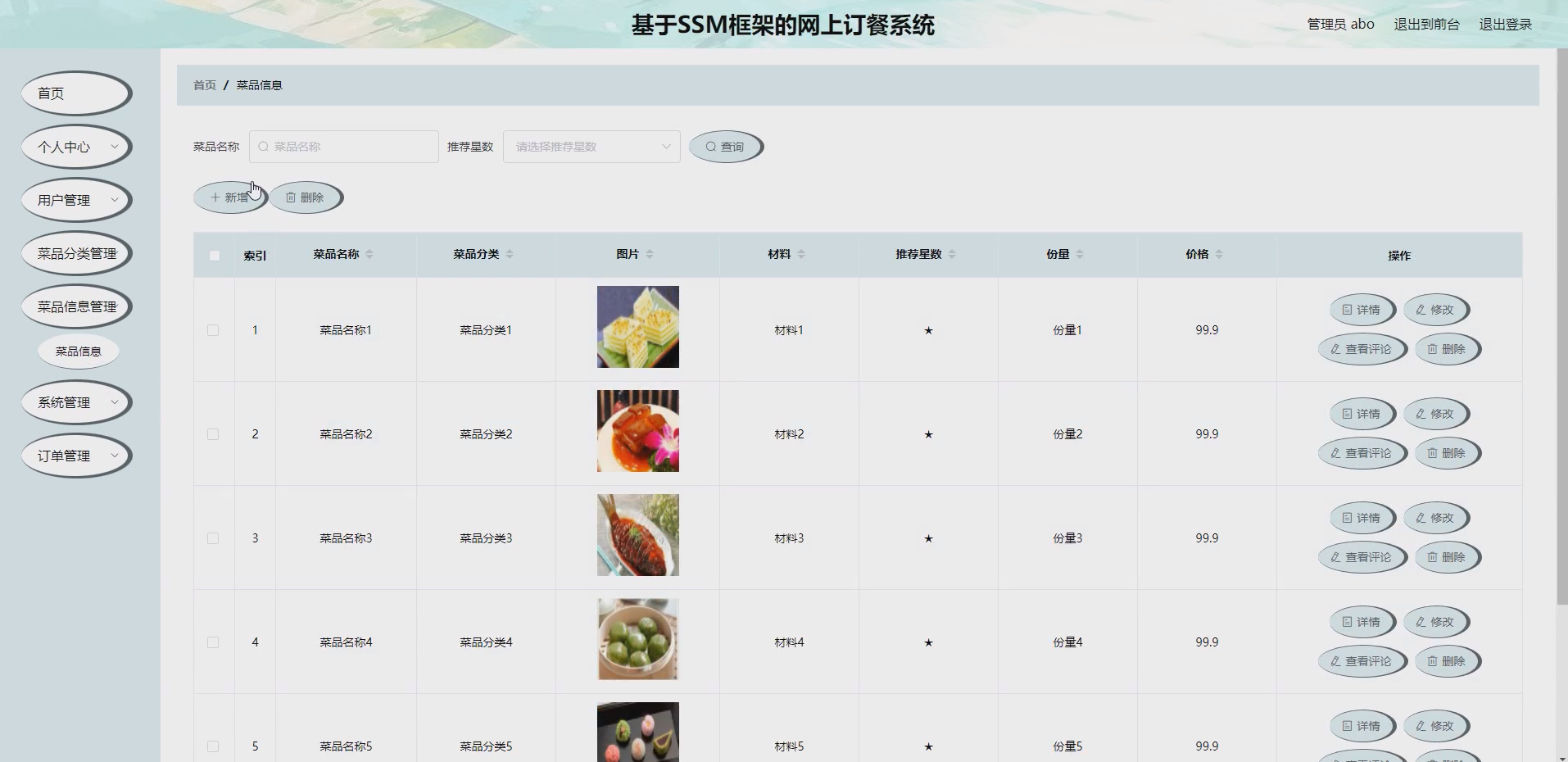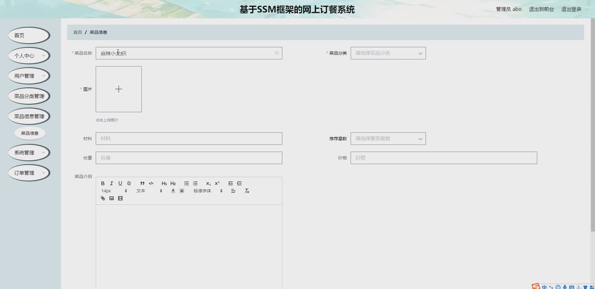 实现菜品信息的全面展示与管理,包括菜品图片、名称、价格、简介、库存等信息的实时更新与查询,为用户提供准确的菜品参考。