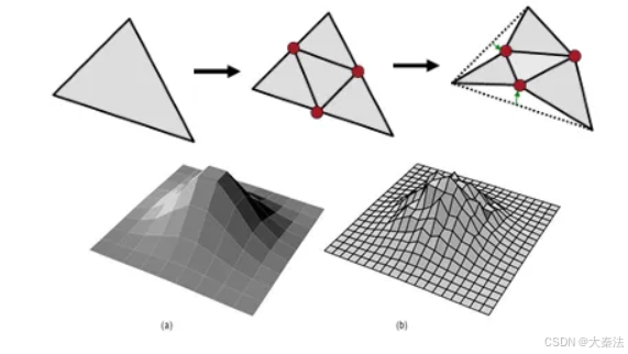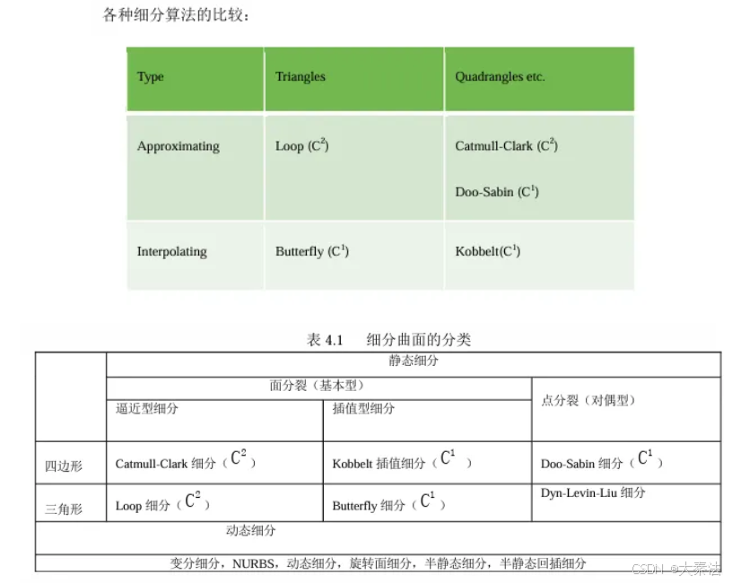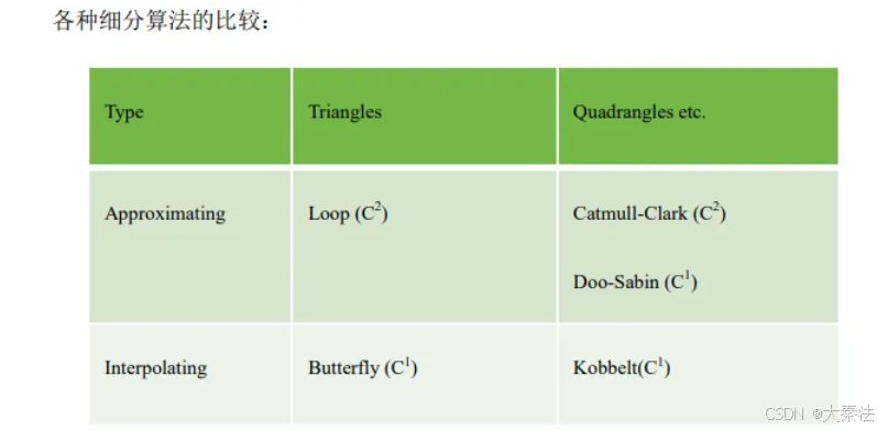 注意前两个是对四边形网络的细分,后两个是对三角网络的细分。
