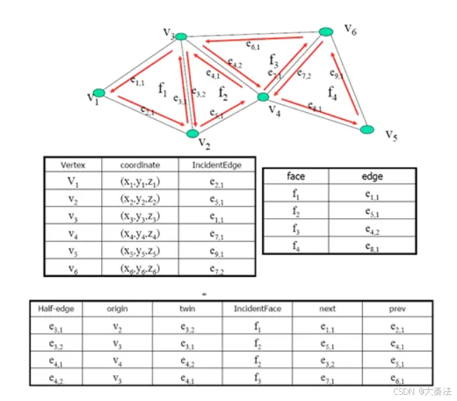 Butterfly方法是由Dyn,Gregory和Levin[Dyn1990]首先提出的一种定义在三角网格上的 细分方法,属于插值的面分裂型方法,即一次细分后,上一层网格的顶点均保持不变,只对每条边生成新边点(E-vertex)。与基于样条的逼近型细分方法不同,这种方法并不能生成分片多项式形式的极限曲面。虽然其细分极限曲面虽然在规则网格上是Cl连续的,但在度不为6的奇异点处却不能达到Cl连续。后来,zorin提出了改进的Butterfly方法,可以在任意三角形网格上生成e,连续的曲面。