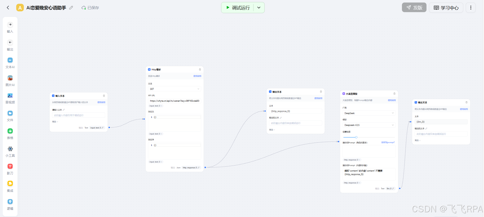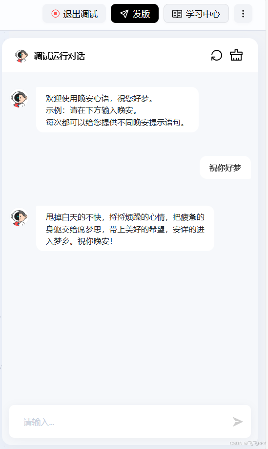 搭建Ai恋爱晚安心语助手主要核心功能: