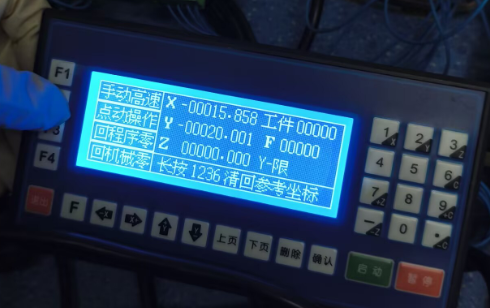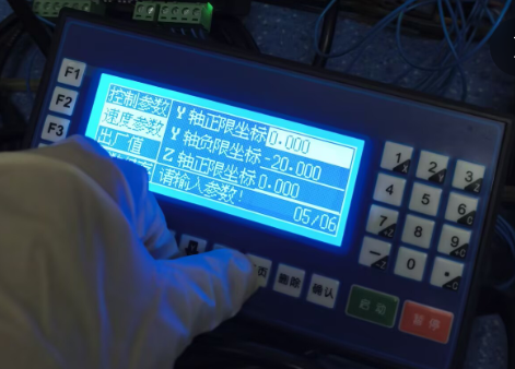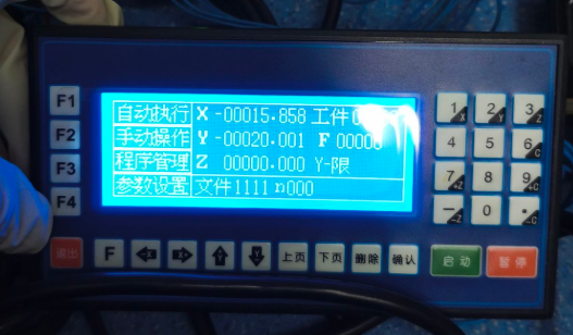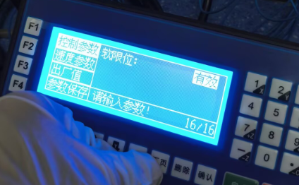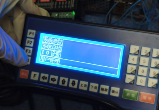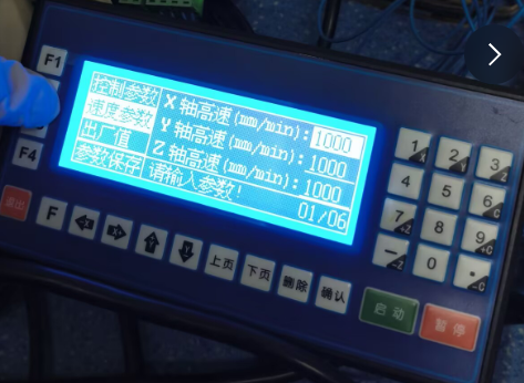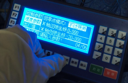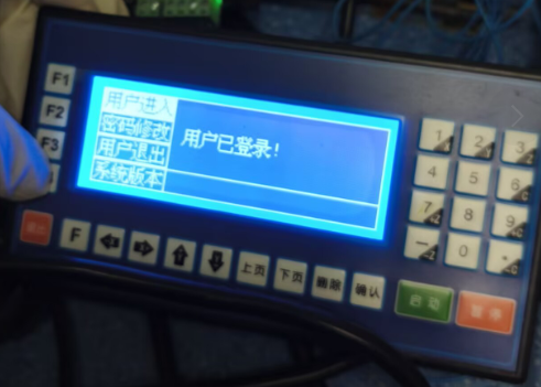 不设置限位老是超过量程哐哐响,坏设备 首先开机后界面是这样的,点“参数设置” 然后点“用户管理”,系统设置需要先登录用户,默认密码123456 成功登录会有下面的提示“用户已登录!” 然后回到主界面,将多轴平台手动操作到你觉得可以的归零点,长按1236清回参考坐标,这个操作就是让当前平台位置为0点,方便后面设置限位坐标。 然后将平台手动位移到限位的地方,记住X,Y的坐标,后面有用 下一步进入“控制参数”界面,一直按“下一页”会出现一个软限位,如果是“禁止”就按确定改成“有效”,然后才能输入软限位参数 然后在”速度参数“界面一直按下一页,会出现正/负限坐标,这个坐标就是刚刚让你记住的限位坐标,填进去就行,XY都得填,如果有Z也填一下,正限坐标就是0 最后点”参数保存“,切记得保存,不保存和没改一样,然后再操作设备,到达限位后就不会再移动