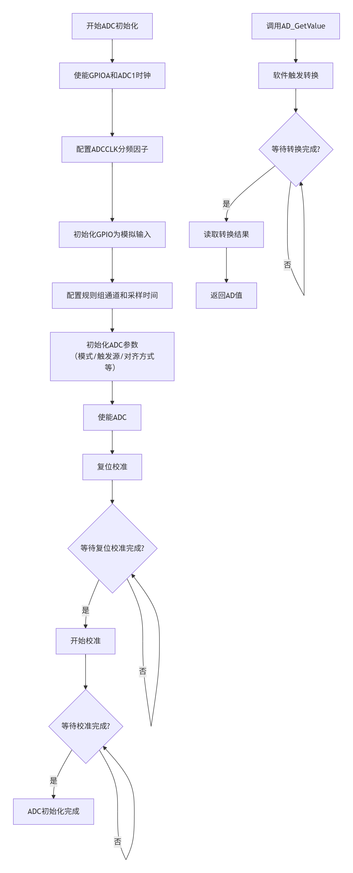 答:目的是为了确保ADC模块能够从一个已知且稳定的初始状态开始计算校准系数,从而获得最高的转换精度。简单来说,这个固定的顺序 复位校准 -> AD校准的核心原因是:复位校准是准备工作,确保“从零开始”。AD校准是核心计算,负责“计算误差”并“存储修正值”。跳过复位校准直接进行AD校准,就像没有清零的计算器直接做复杂的数学运算,结果很可能是不正确的。