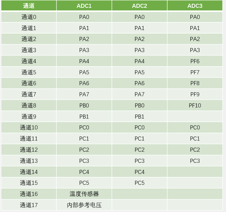 //ADC_SampleTime_55Cycles5表示采样时间为55.5个ADCCLK周期