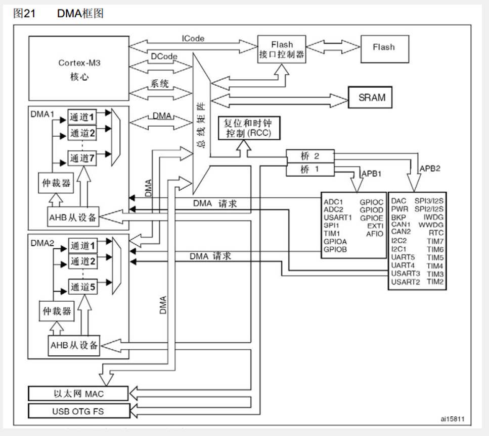 ①DMA连接在AHB总线上,所以开启时钟要开启AHB总线上的时钟.