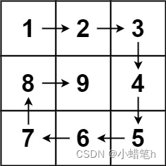 输出:[[1,2,3],[8,9,4],[7,6,5]]